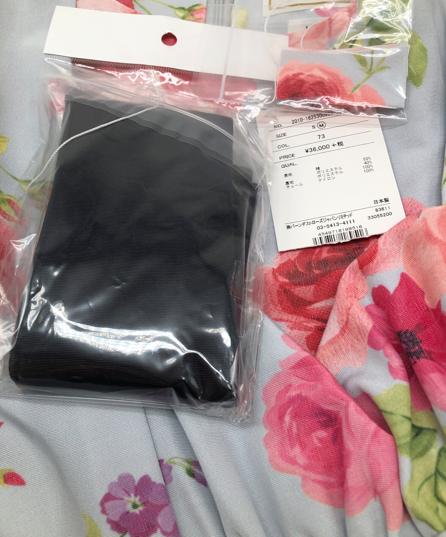 | 素材 | 表地: 綿60% ポリエステル 40% 裏: ポリエステル100% チュール: ナイロン 100% |