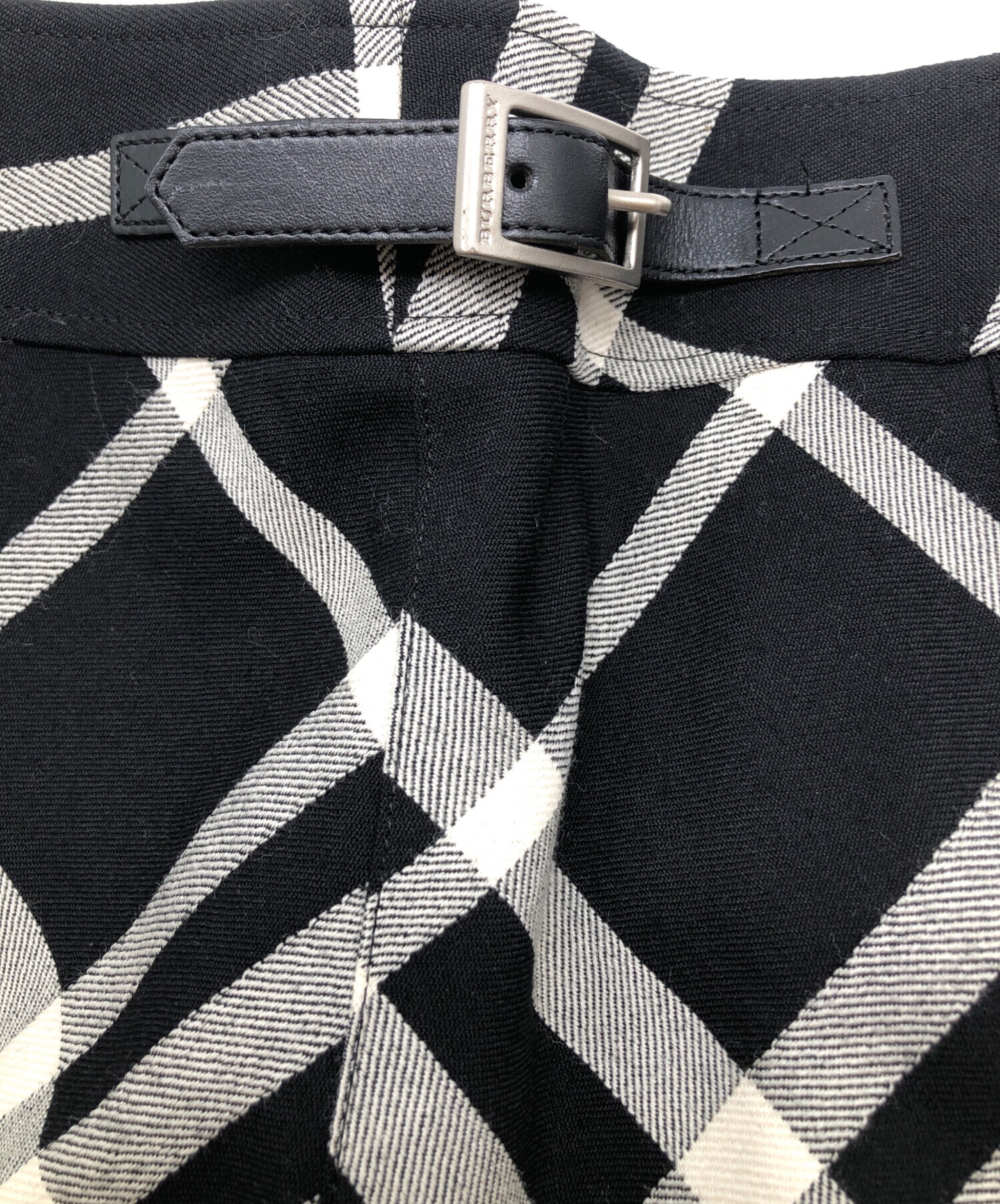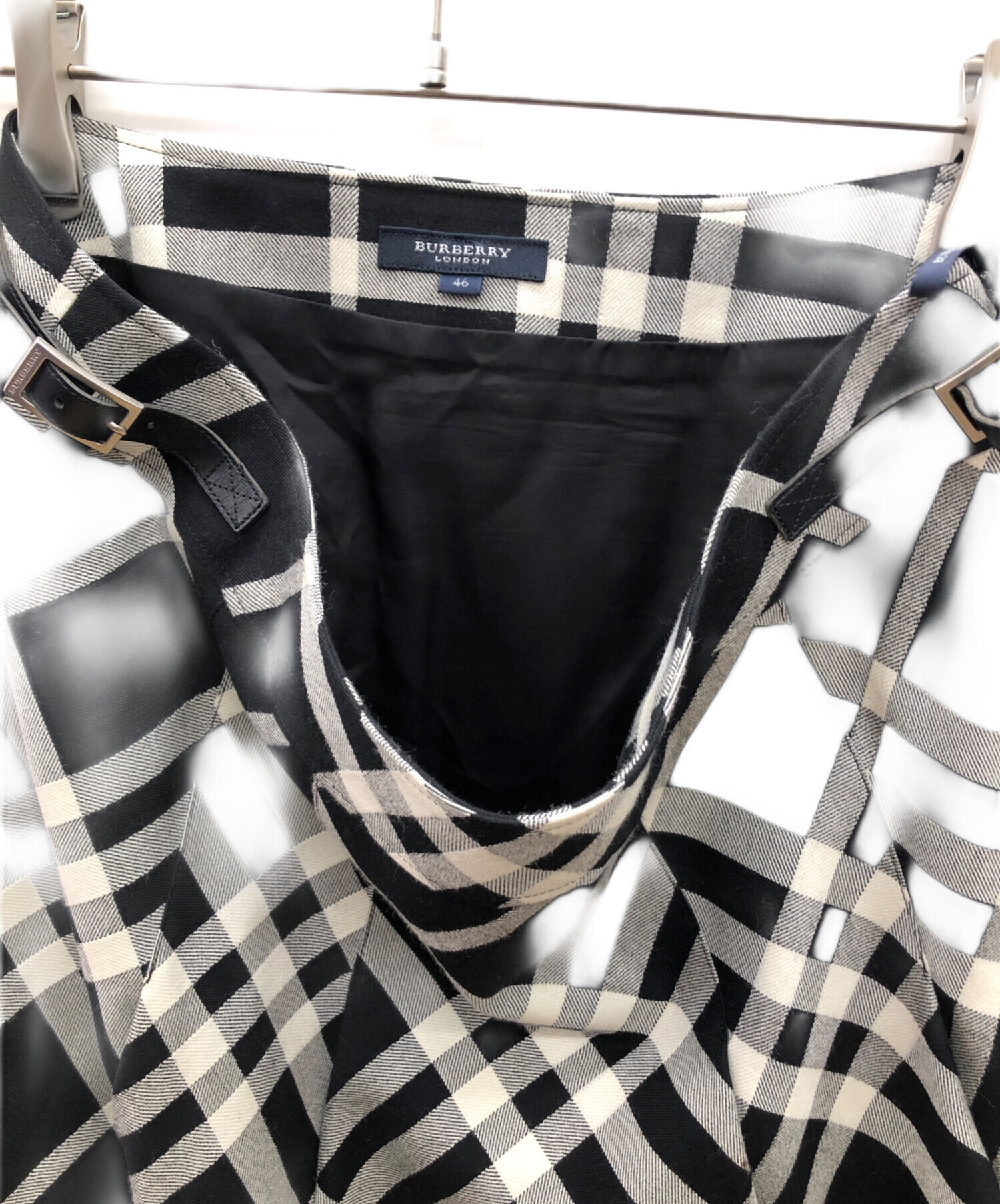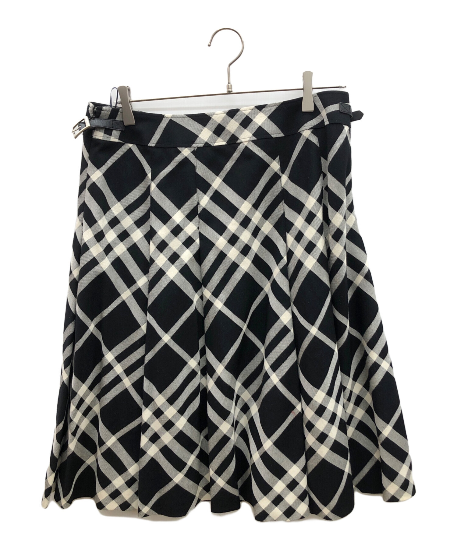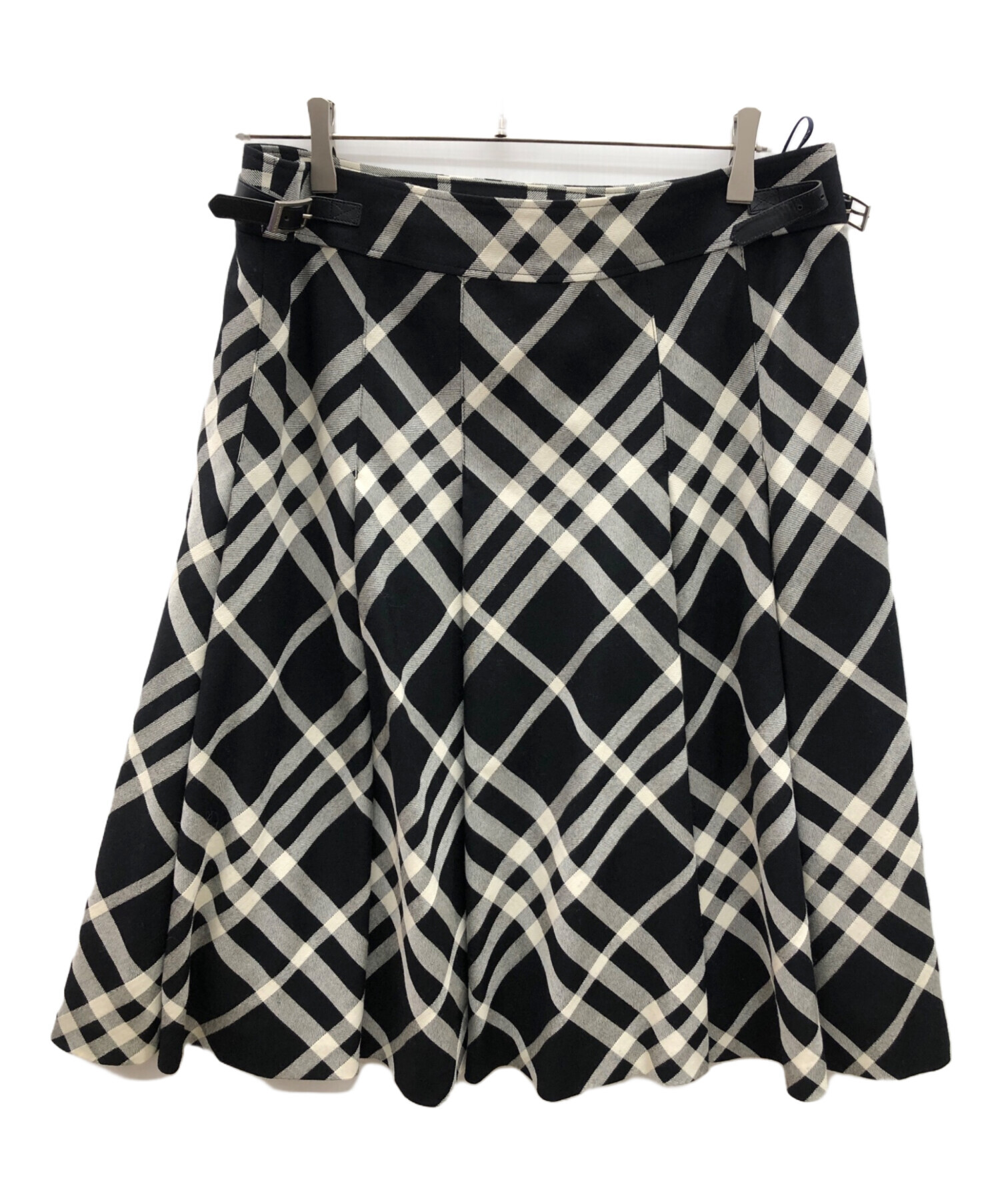 • BURBERRY LONDON(バーバリーロンドン)BURBERRY LONDON (バーバリーロンドン) チェックスカート ブラック×アイボリー サイズ:46の古着・服飾アイテム ベルトに薄いキズ有