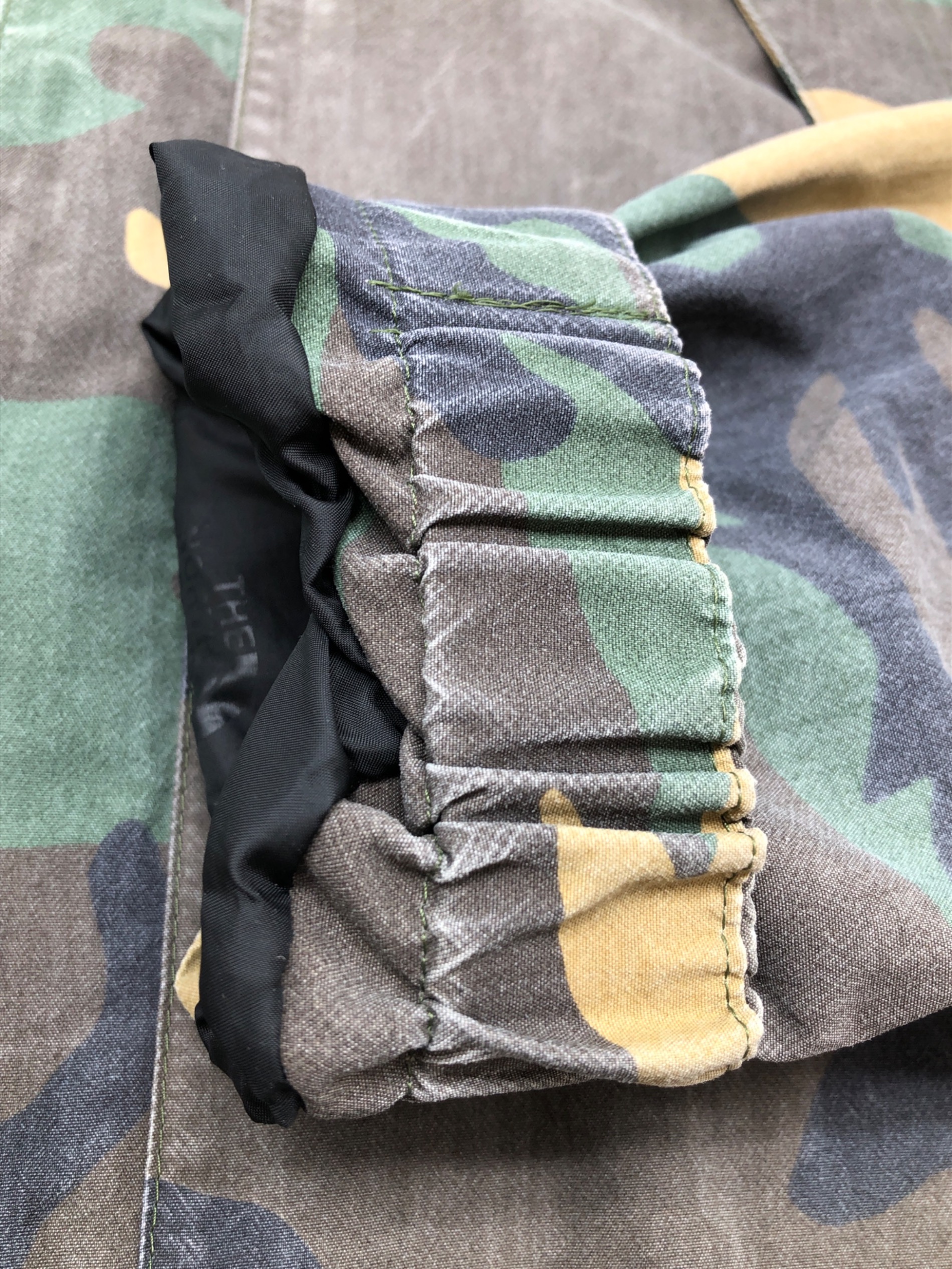 • THE NORTH FACE(ザ ノース フェイス)THE NORTH FACE (ザ ノース フェイス) NOVELTY SCOOP JACKET グリーン×グレー サイズ:Sの古着・服飾アイテム 裏地に多数の細かいホツレ有り