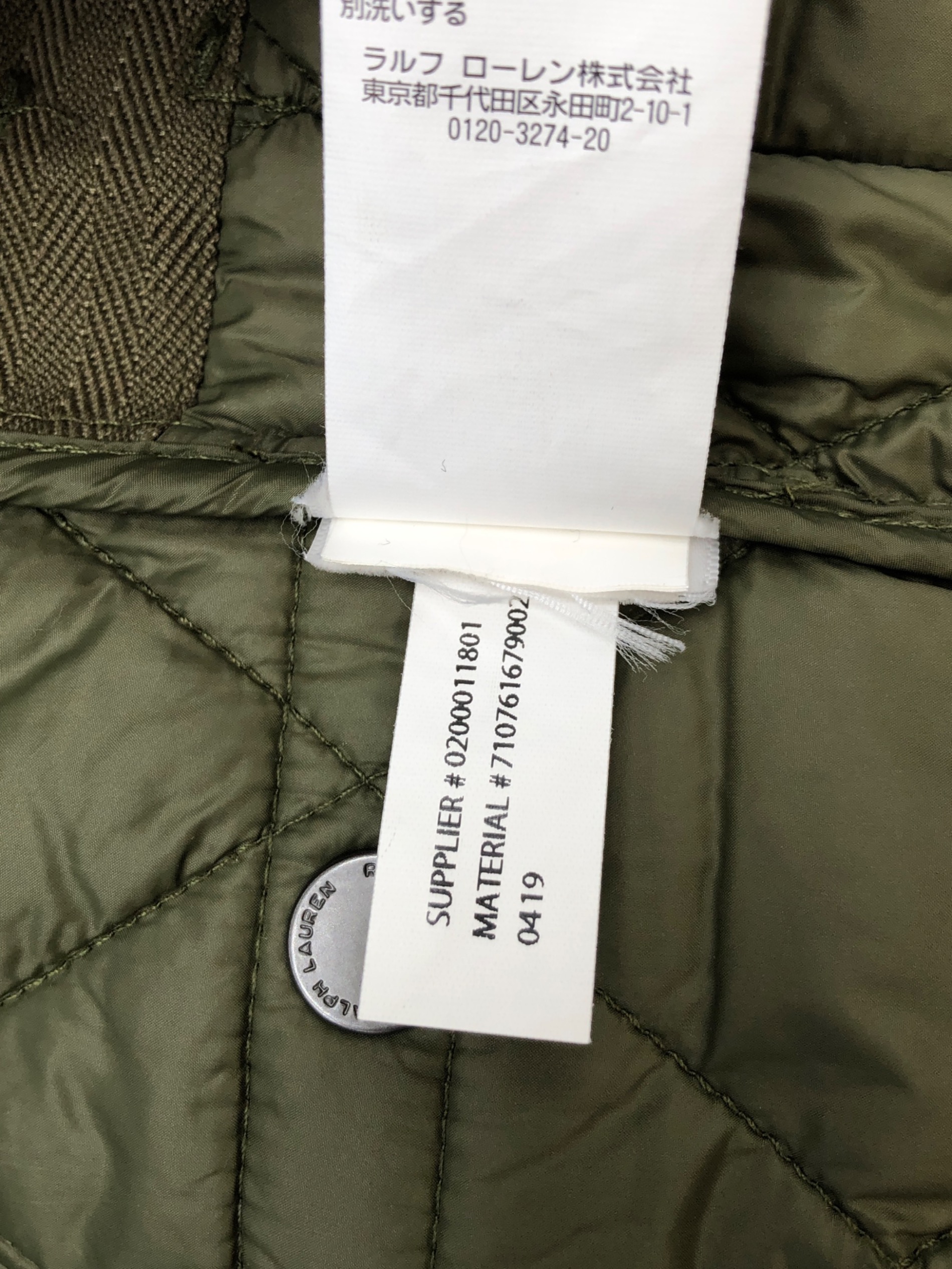 • POLO RALPH LAUREN(ポロ・ラルフローレン)POLO RALPH LAUREN (ポロ・ラルフローレン) キルティングジャケット グリーン サイズ:Lの古着・服飾アイテム タグ一部欠損有り