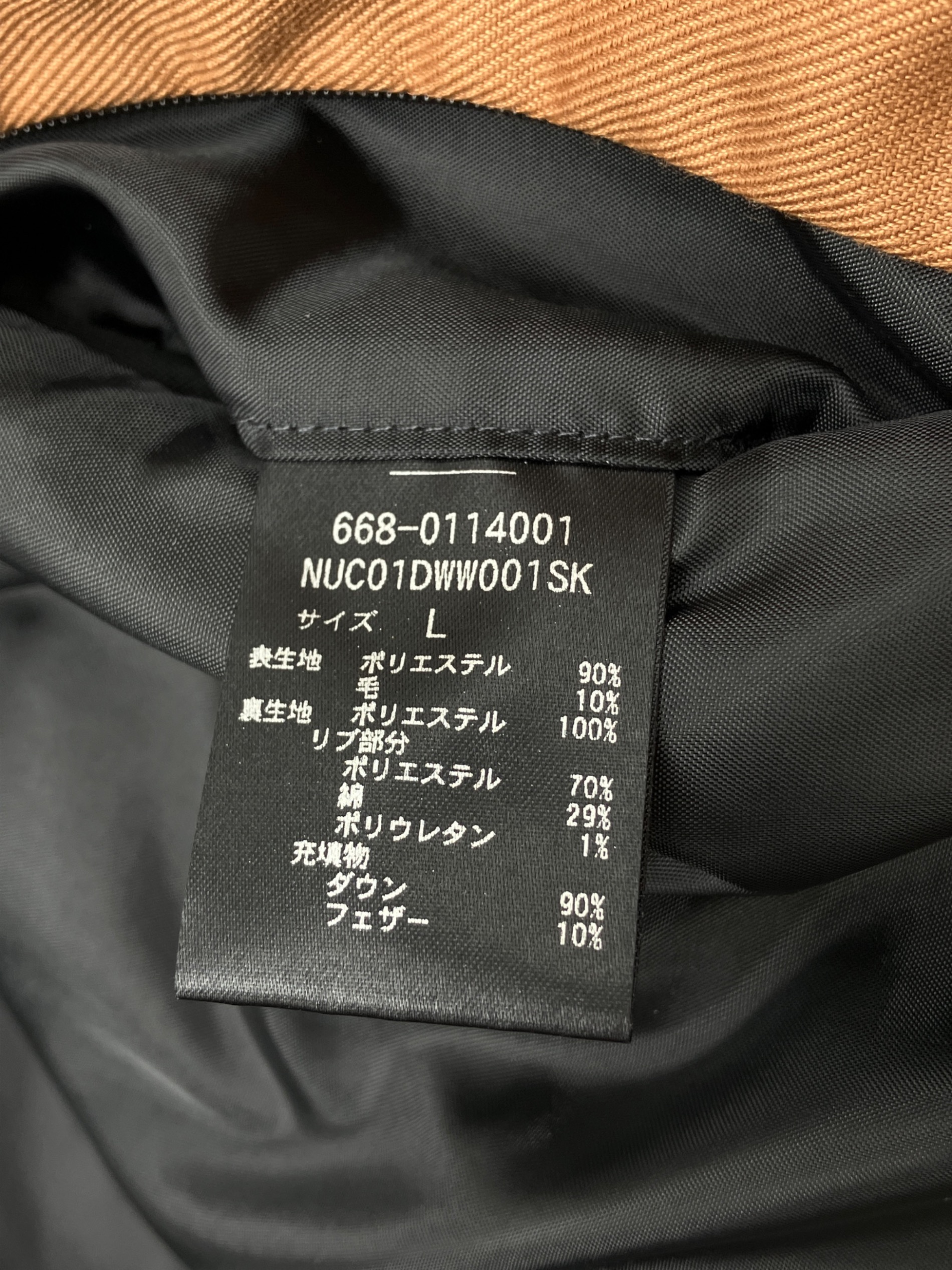 | 素材 | 表生地: ポリエステル 90% 毛 10% 裏生地: ポリエステル 100% リブ部分: ポリエステル 70% 綿 29% ポリウレタン 1% 充填物: ダウン 90% フェザー 10% |