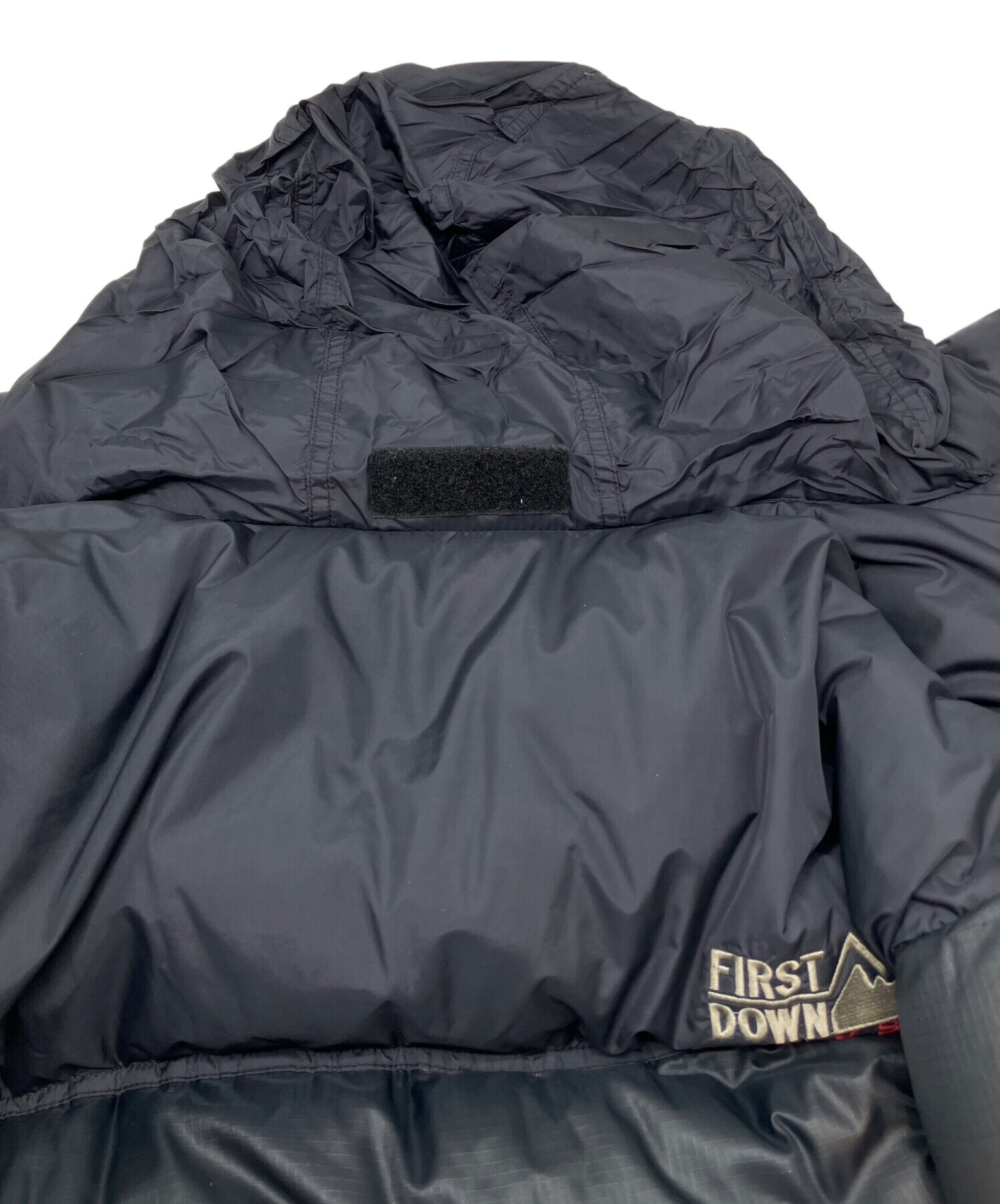 • FIRST DOWN(ファーストダウン)FIRST DOWN (ファーストダウン) ダウンジャケット ネイビー サイズ:Mの古着・服飾アイテム 襟にフードの収納有り