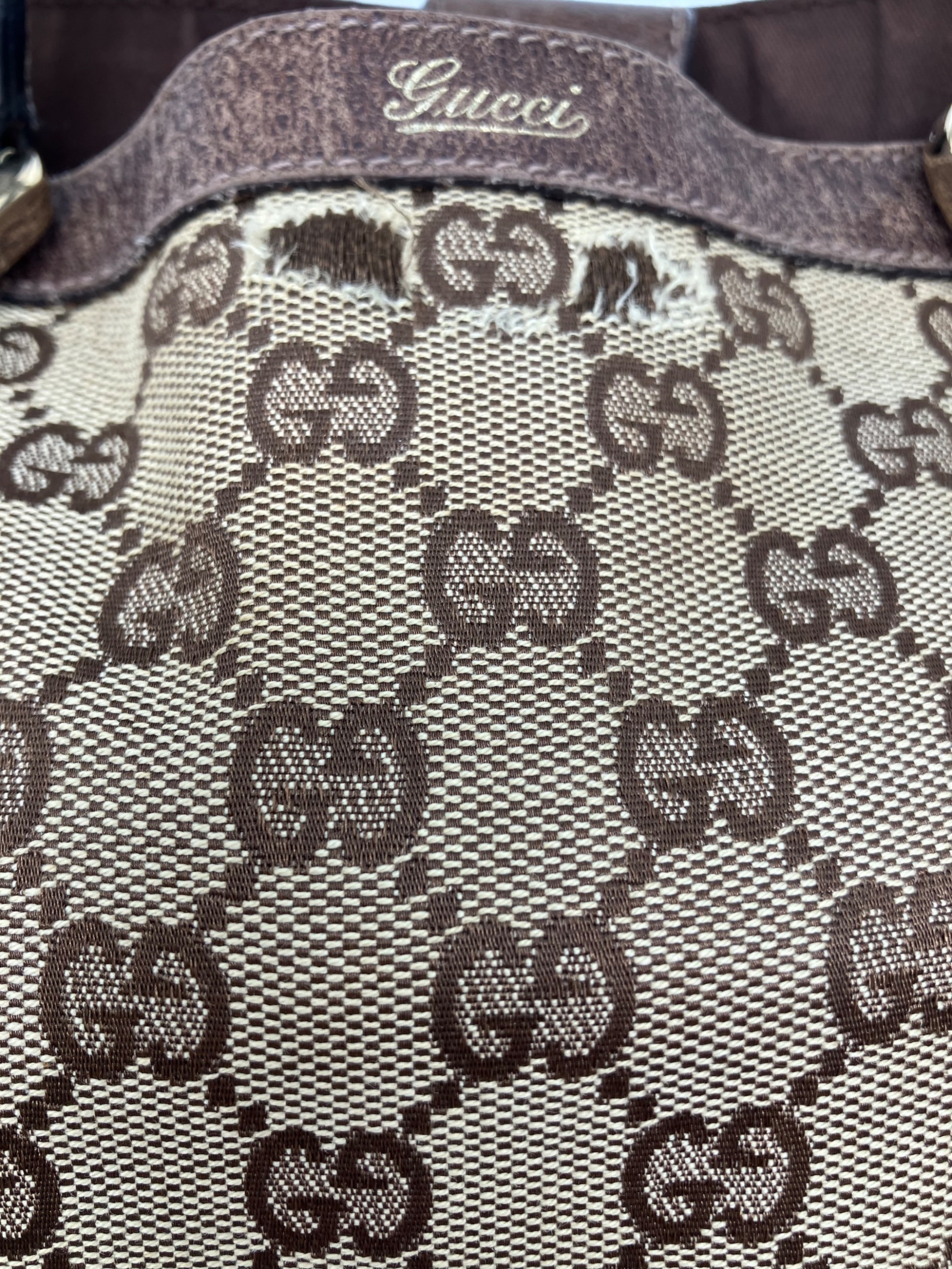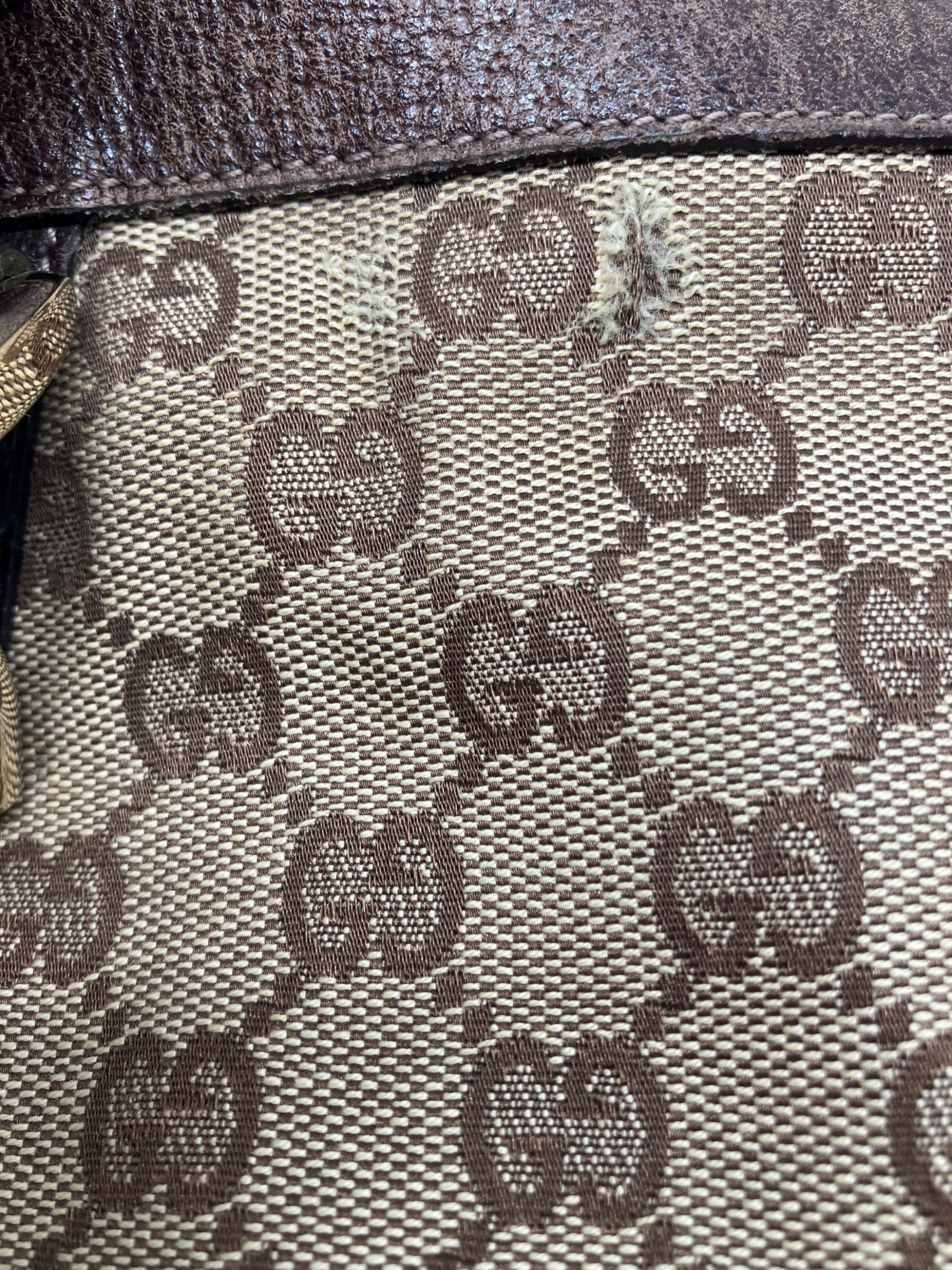 • GUCCI(グッチ)GUCCI (グッチ) GGキャンバス2WAYバッグ ベージュ×ブラウンの古着・服飾アイテム 表面ダメージ有