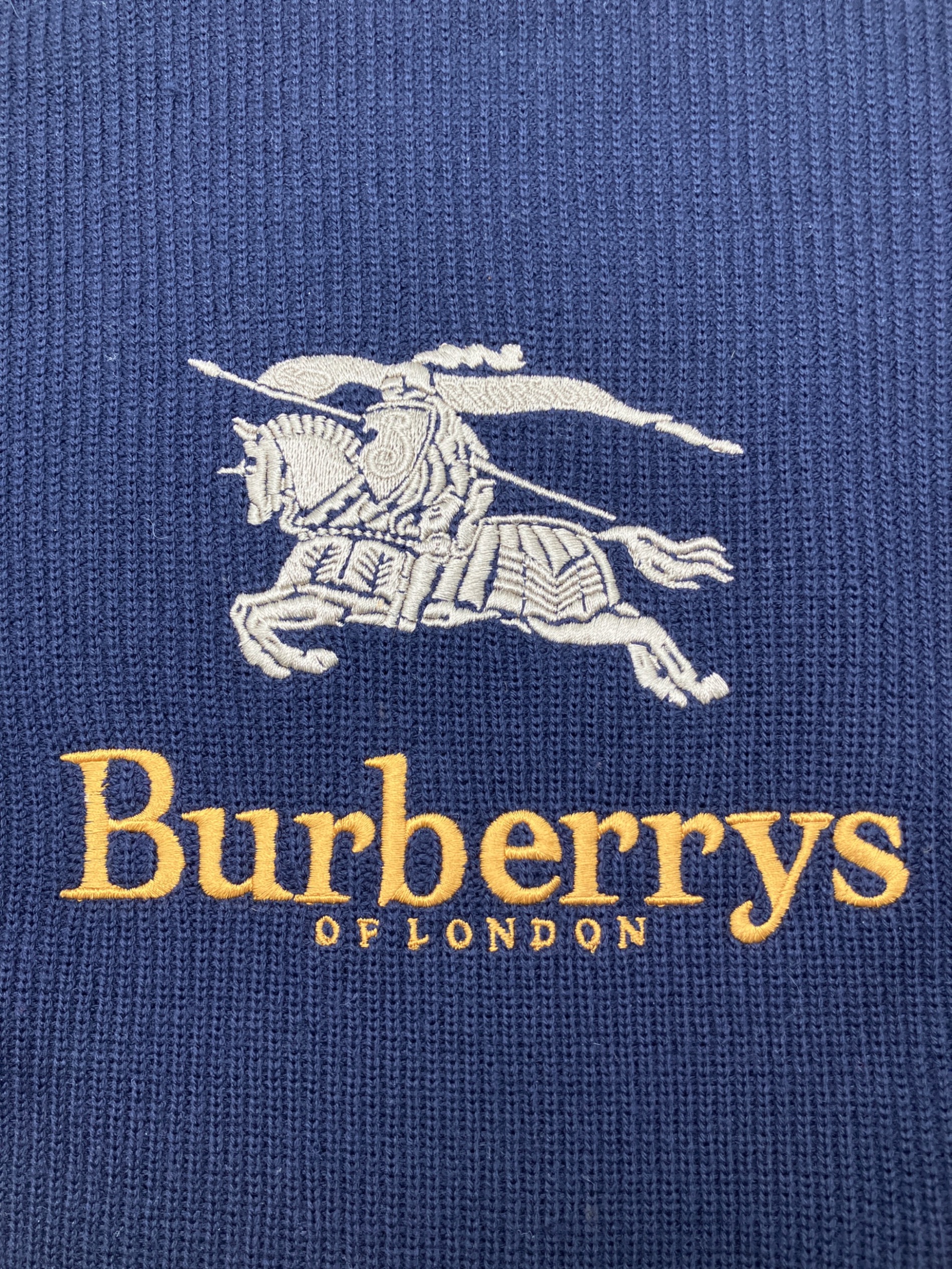 • Burberry's(バーバリー)Burberry's (バーバリー) 厚手ニット 古着 ネイビー×イエロー サイズ:LYの古着・服飾アイテム 襟タグにシミ有り