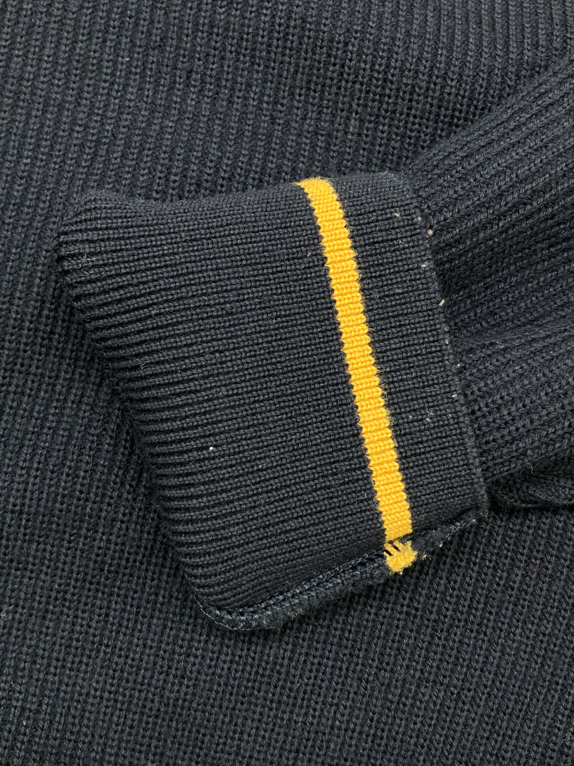 • Burberry's(バーバリー)Burberry's (バーバリー) 厚手ニット 古着 ネイビー×イエロー サイズ:LYの古着・服飾アイテム 袖口に毛玉有り