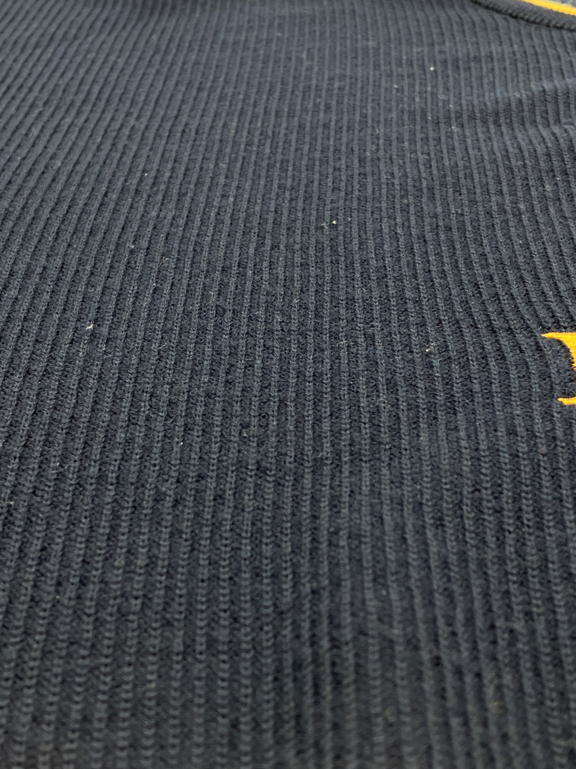 • Burberry's(バーバリー)Burberry's (バーバリー) 厚手ニット 古着 ネイビー×イエロー サイズ:LYの古着・服飾アイテム 表面全体に毛羽立ち、毛玉有り
