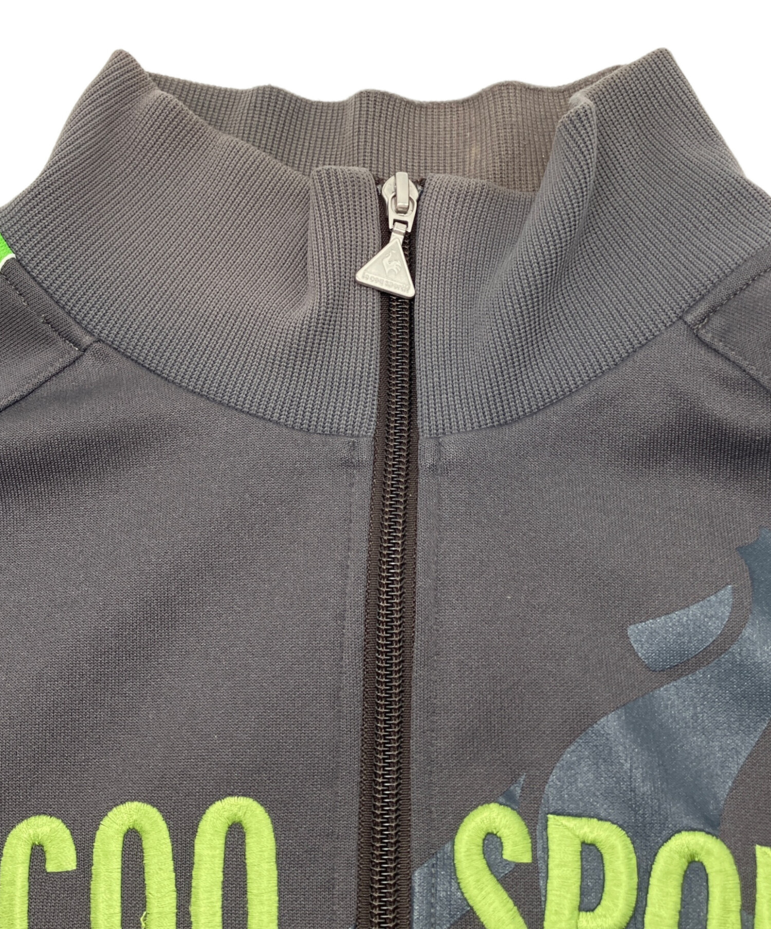 • le coq sportif(ルコックスポルティフ)le coq sportif (ルコックスポルティフ) 90sトラックジャケット Y2K 古着 グレー×グリーン サイズ:Mの古着・服飾アイテム プリント部分にひび割れ有