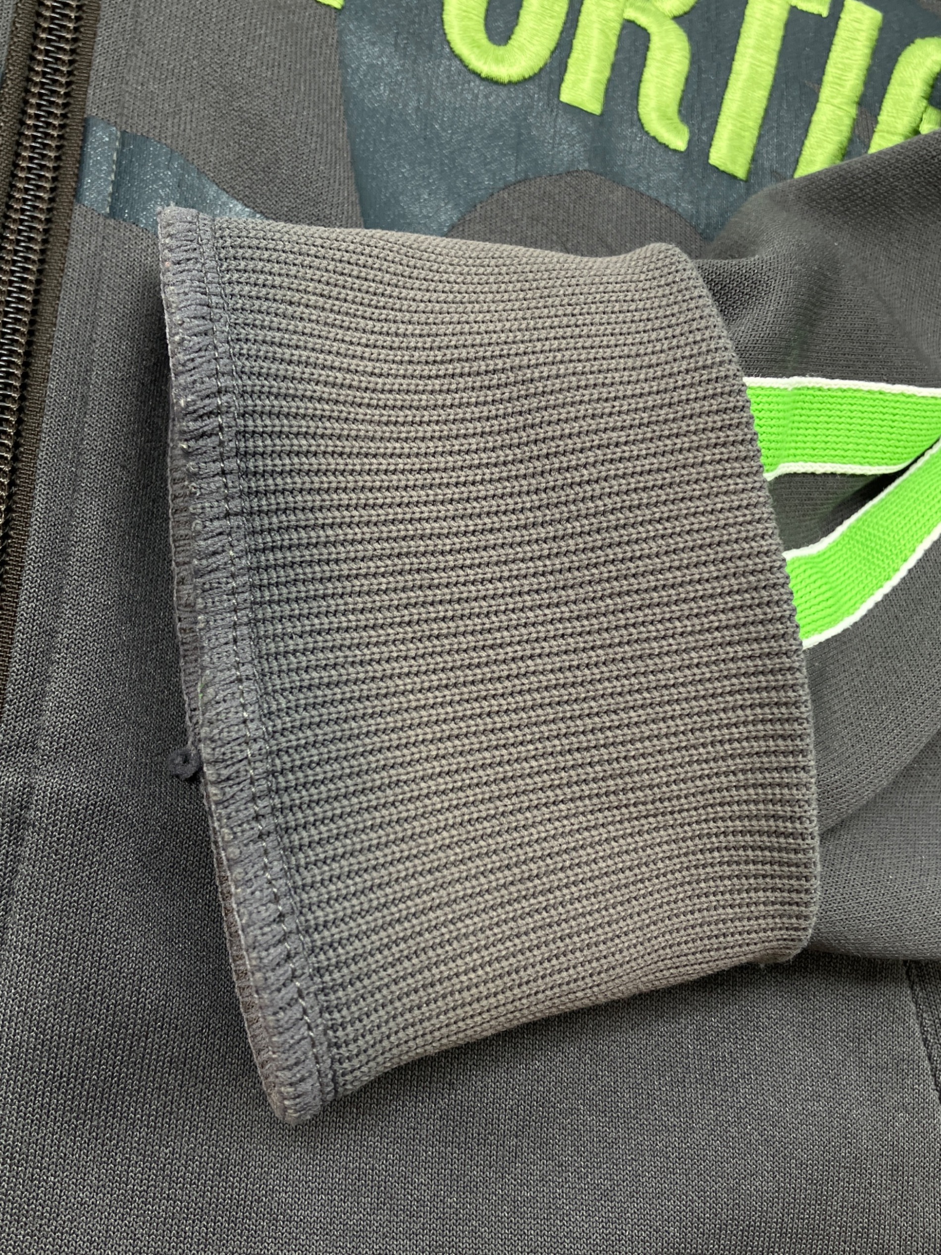 • le coq sportif(ルコックスポルティフ)le coq sportif (ルコックスポルティフ) 90sトラックジャケット Y2K 古着 グレー×グリーン サイズ:Mの古着・服飾アイテム 裏地に複数のホツレ有り