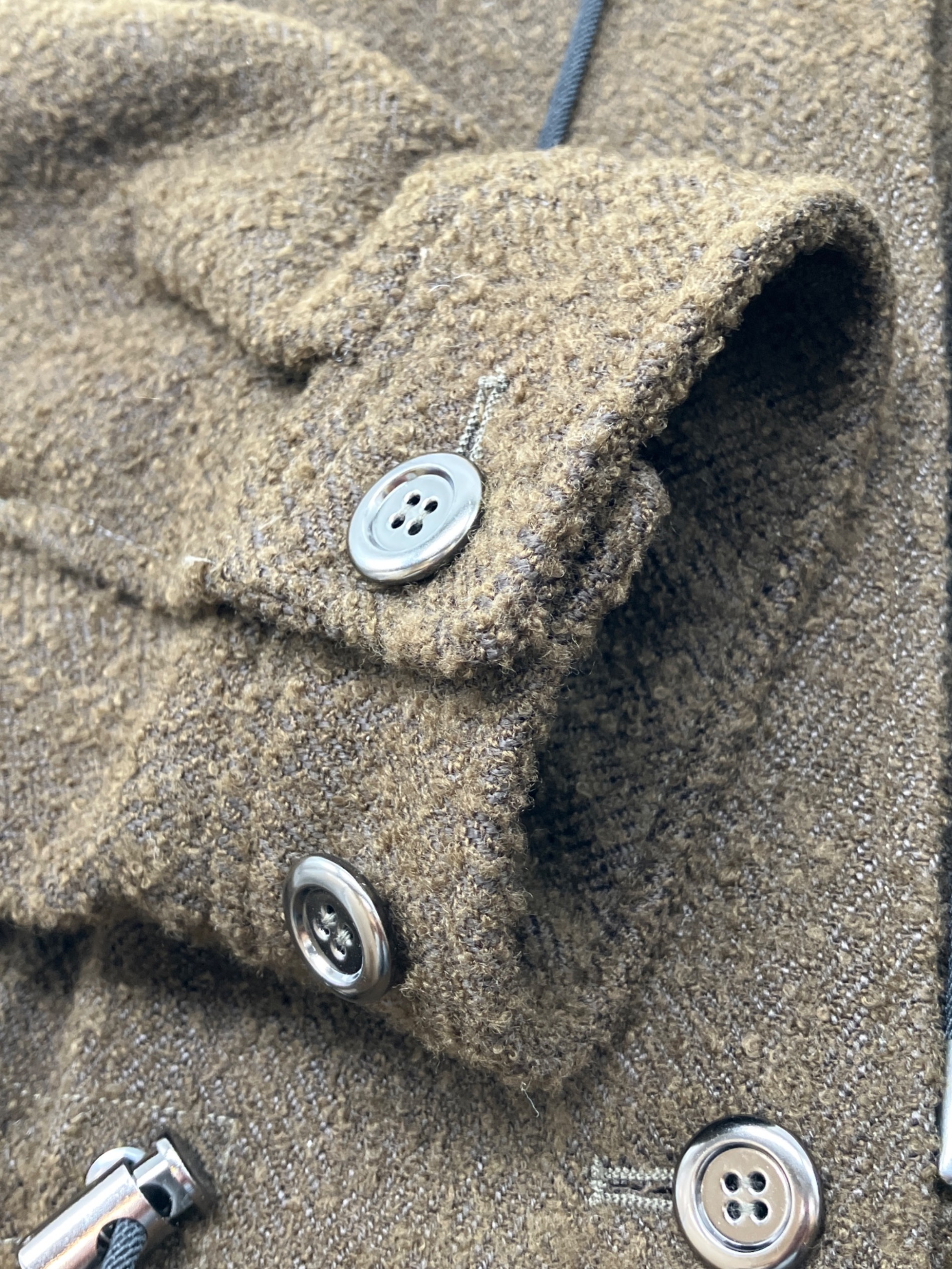 | 素材 | 表生地: アクリル 55% 毛 30% ナイロン 10% ポリエステル 4% レーヨン 1% 裏生地: ポリエステル 100% フード 基布: ポリエステル 100% ボア部分: ポリエステル 85% 毛 15% |
