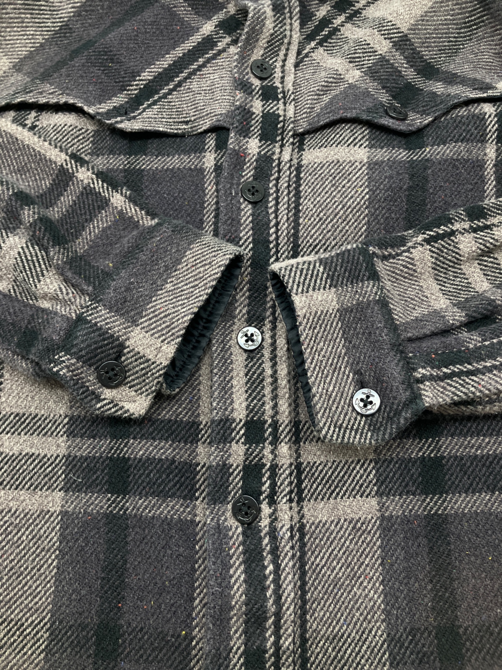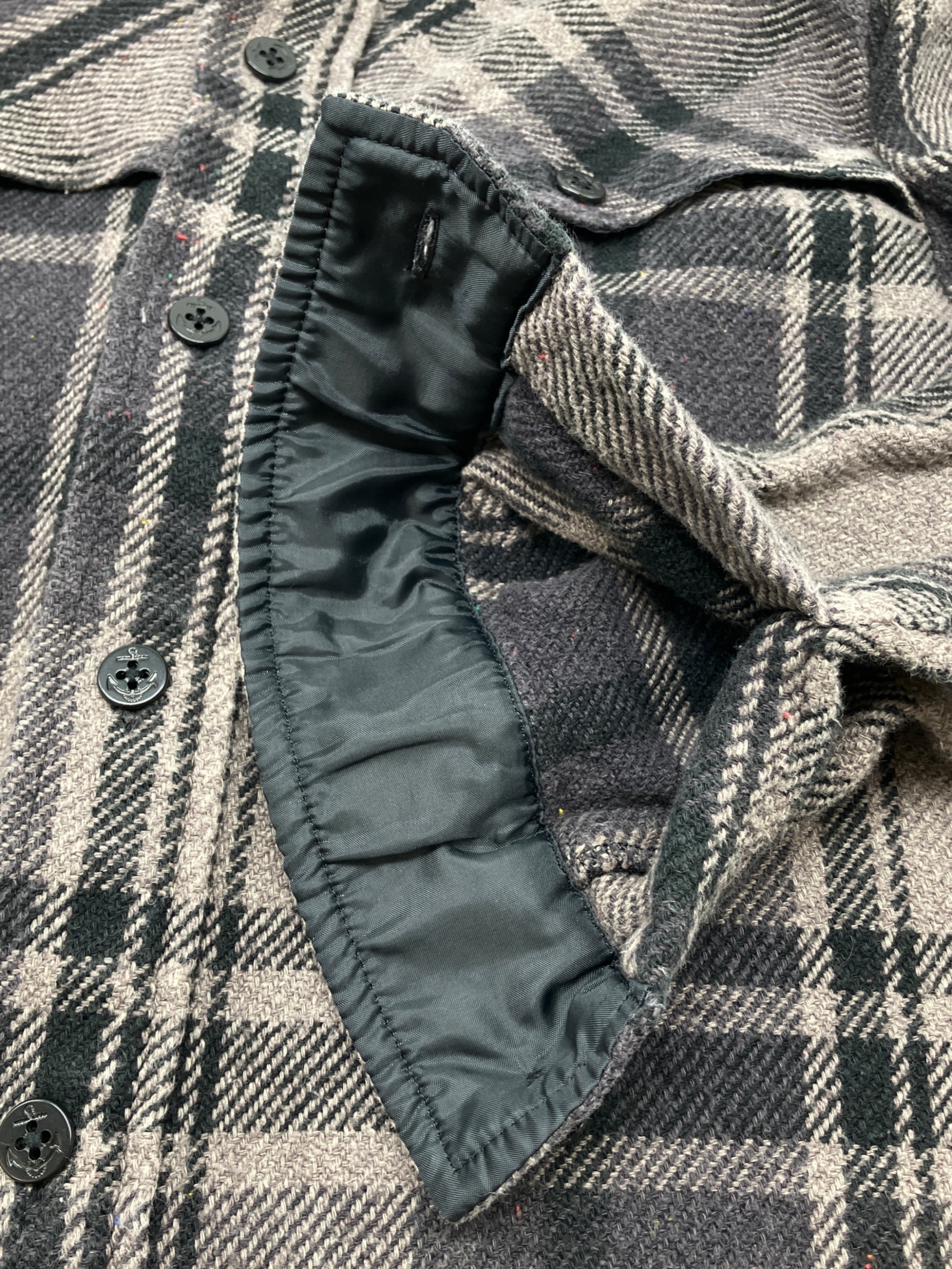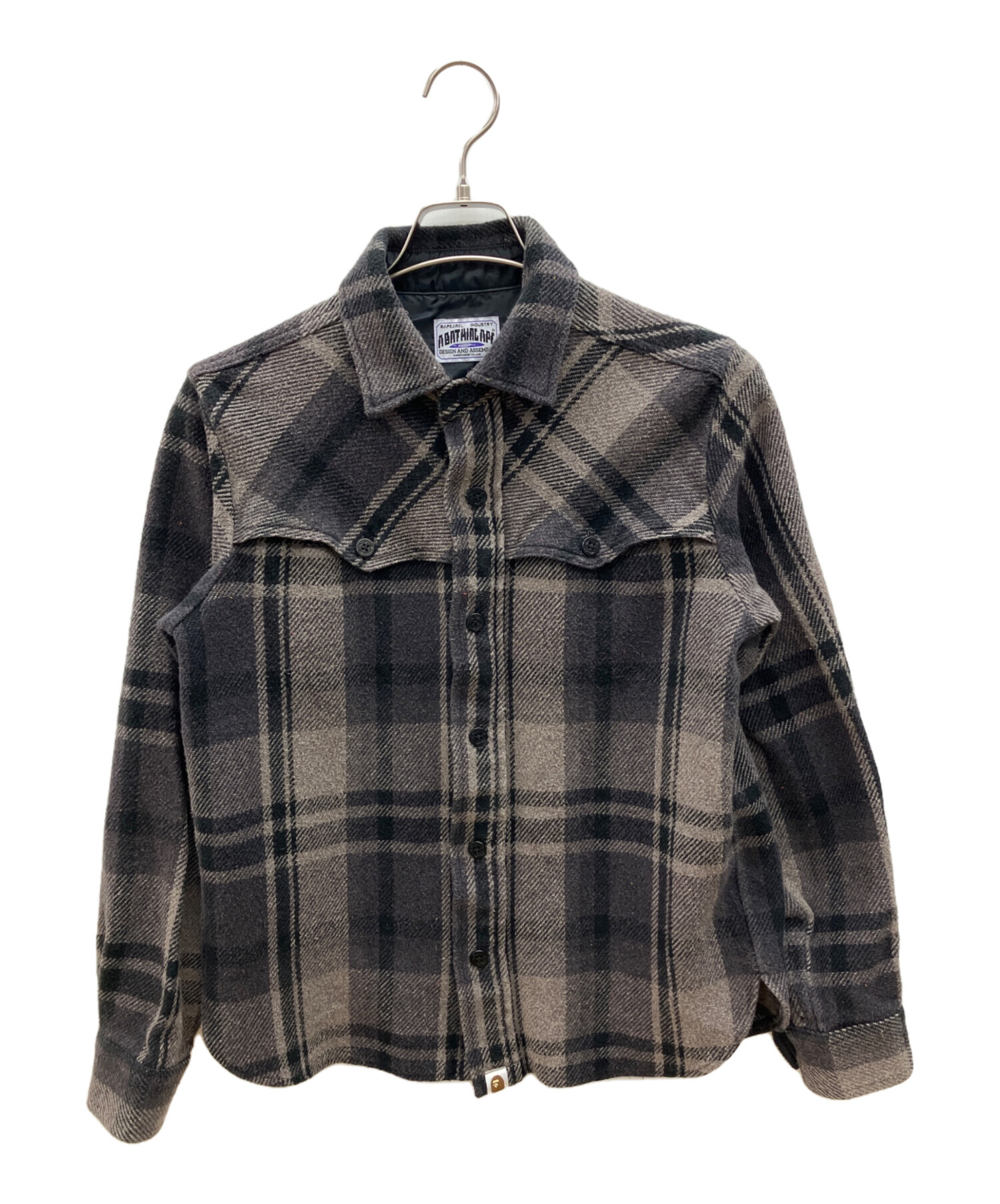 • A BATHING APE(ア ベイシング エイプ)A BATHING APE (ア ベイシング エイプ) シャツジャケット グレー サイズ:Mの古着・服飾アイテム 表面に毛羽立ち、毛玉有り