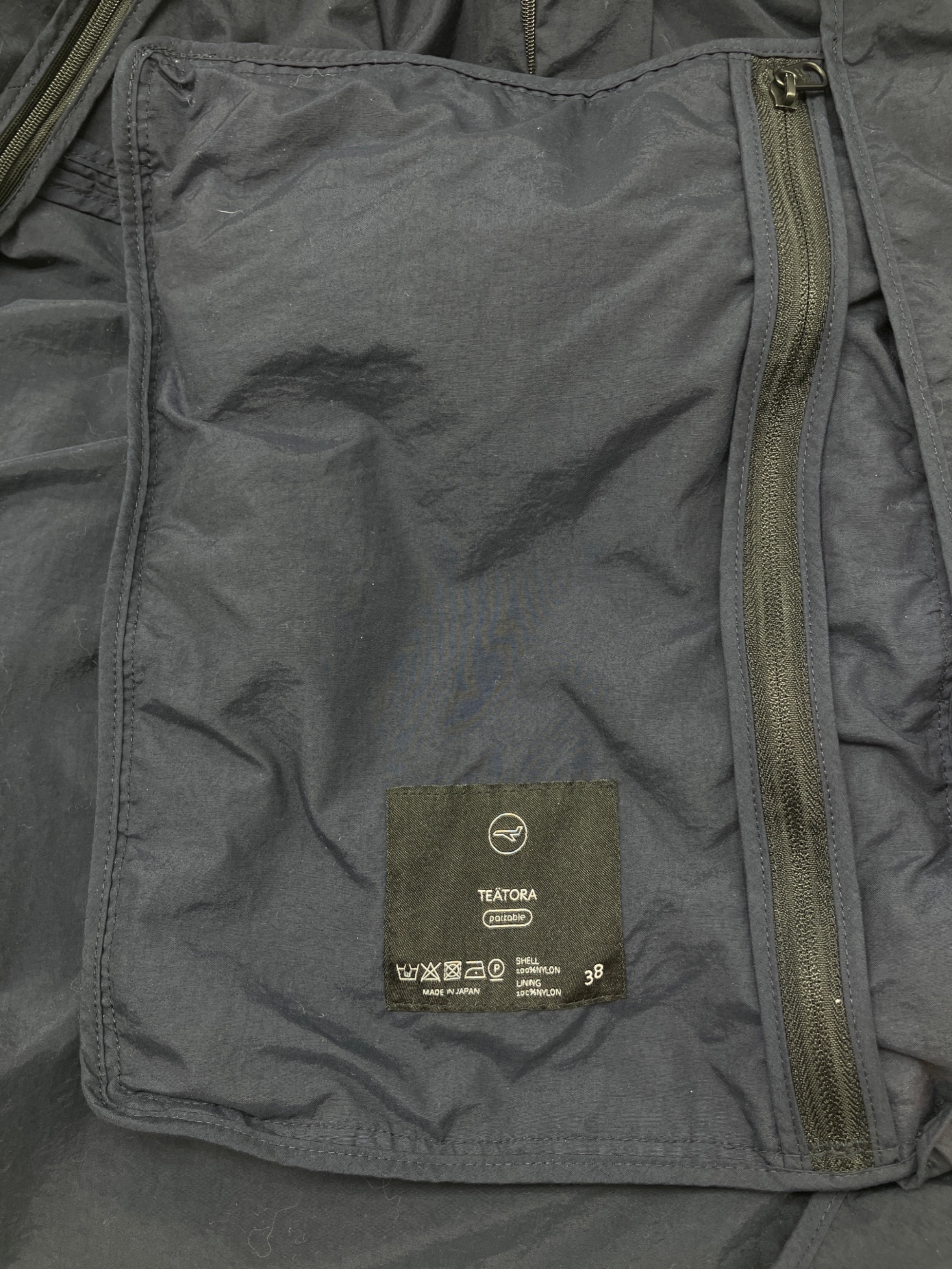 • teatora(テアトラ)teatora (テアトラ) コート PACKABLE ネイビー サイズ:38の古着・服飾アイテム 内部に繋がるファスナー有り