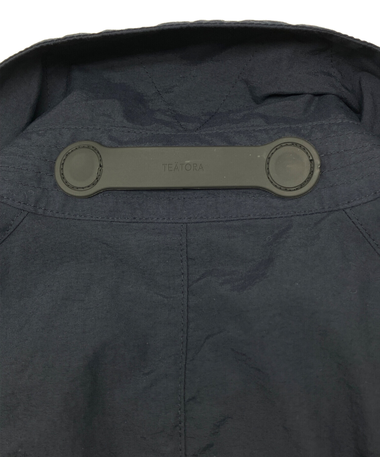 • teatora(テアトラ)teatora (テアトラ) コート PACKABLE ネイビー サイズ:38の古着・服飾アイテム 背面襟にゴム製のロゴ有り