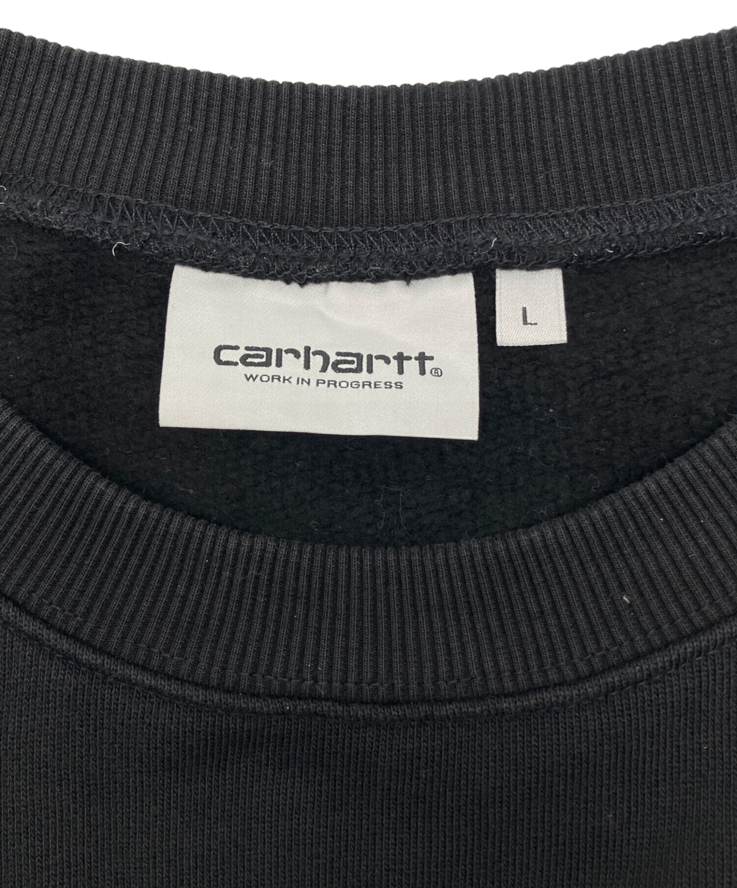 • CarHartt(カーハート)CarHartt (カーハート) スウェット ヴィンテージアメカジ ブラック サイズ:Lの古着・服飾アイテム 襟に色褪せ有り
