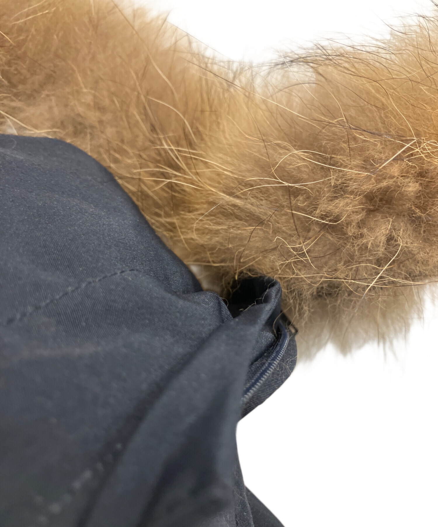 | 素材 | 表地:ポリエステル 82% 綿 18% 裏地:ポリエステル 100% 詰物:ダウン 80% フェザー 20% リブ部分:アクリル 88% ポリエステル 11% ポリウレタン 1% ファー部分:タヌキ (チャイニーズラクーン) |