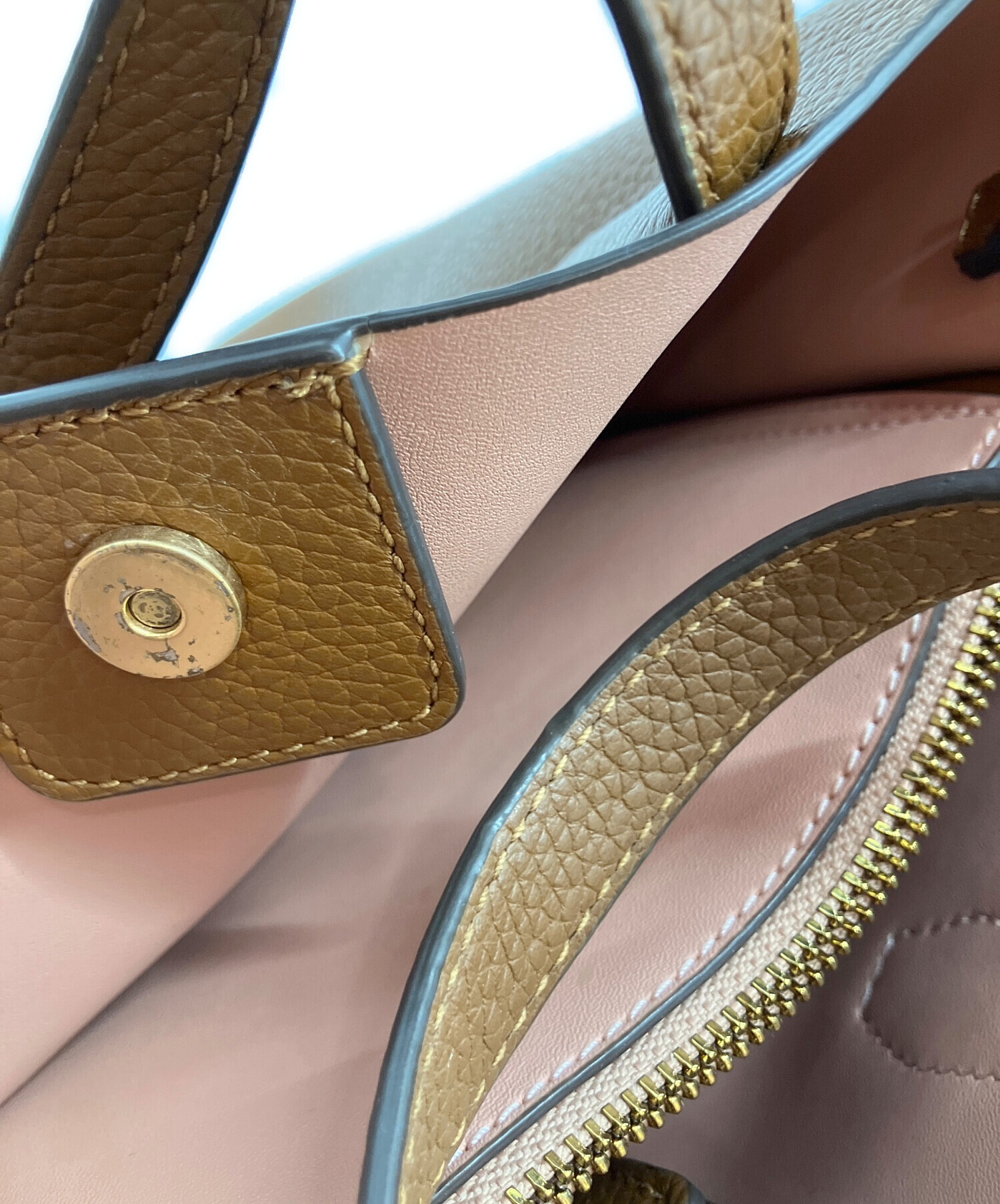 • TORY BURCH(トリーバーチ)TORY BURCH (トリーバーチ) ブレイクスモール トートバッグ ブラウンの古着・服飾アイテム ボタンスレあり