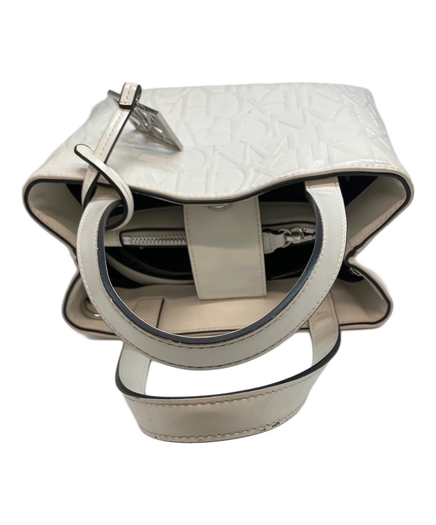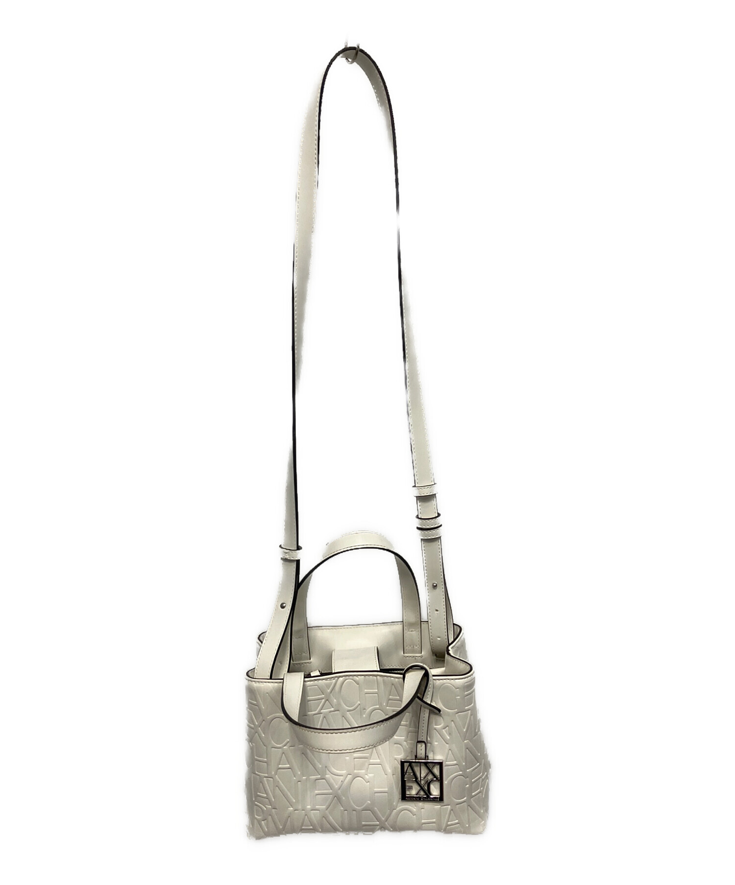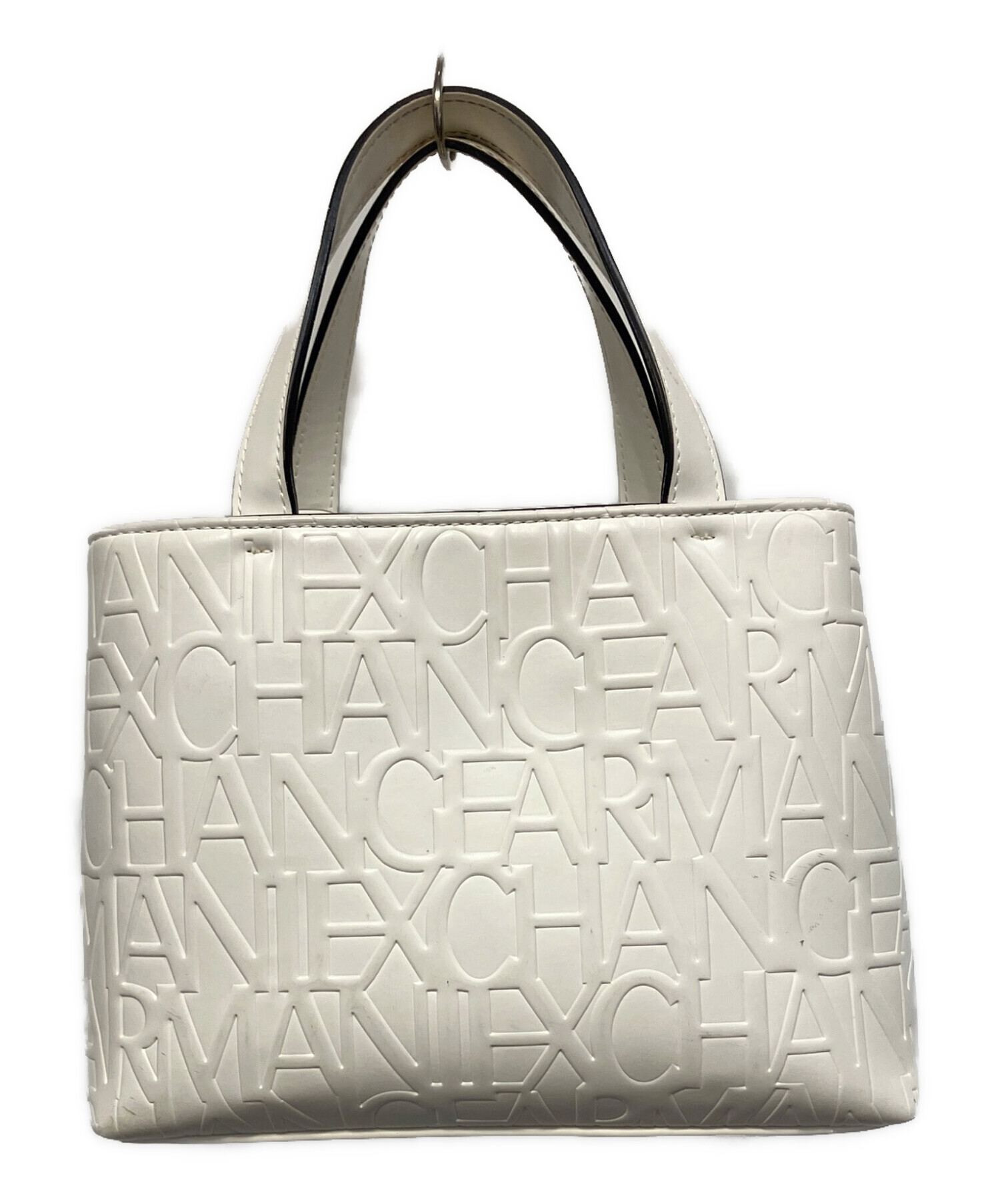 • ARMANI EXCHANGE(アルマーニ エクスチェンジ)ARMANI EXCHANGE (アルマーニ エクスチェンジ) オールオーバーエンボスロゴミニトートバッグ トートバッグ ホワイトの古着・服飾アイテム 底面使用感、ヨゴレあり