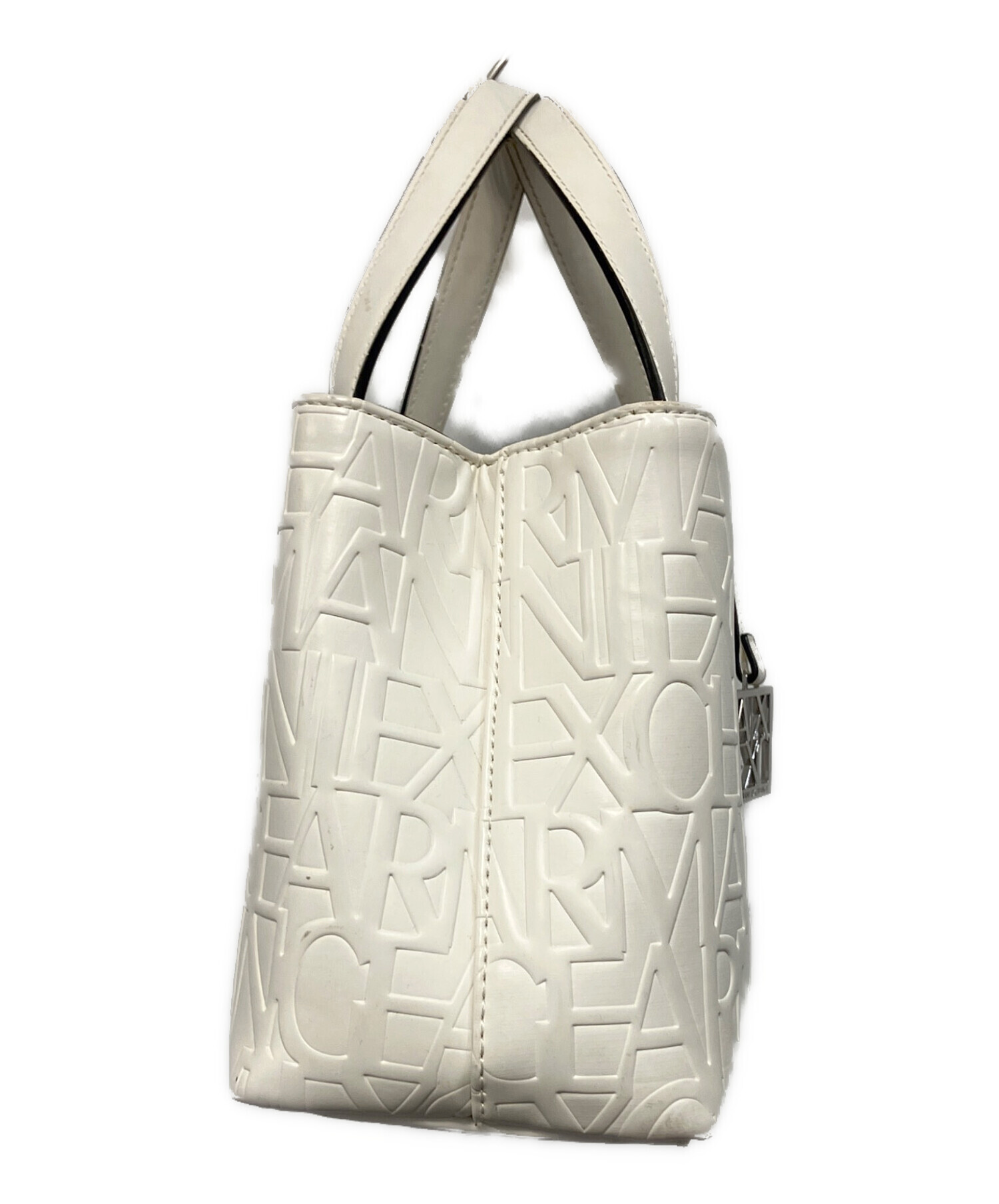• ARMANI EXCHANGE(アルマーニ エクスチェンジ)ARMANI EXCHANGE (アルマーニ エクスチェンジ) オールオーバーエンボスロゴミニトートバッグ トートバッグ ホワイトの古着・服飾アイテム ハンドル部ヨゴレあり