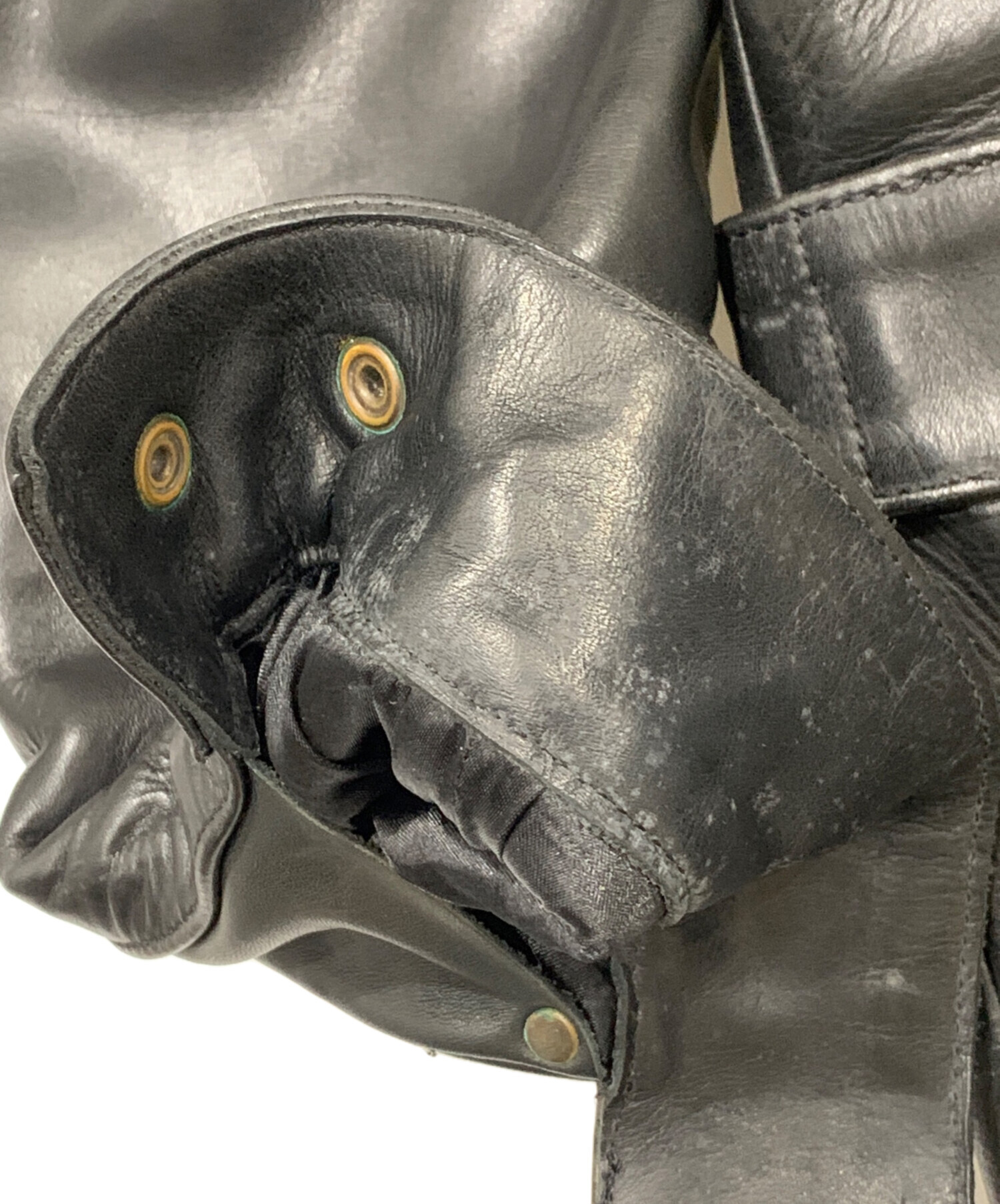 | 状態 | こちらの商品は中古品の為、使用に伴いますキズ、汚れが各所に見受けられます。店頭にて展示販売を行っている為、記載に無い細かなキズ、汚れが見受けられる場合がございます。 袖口のカビ汚れ 金具のサビ・ボタンのサビ劣化有 |