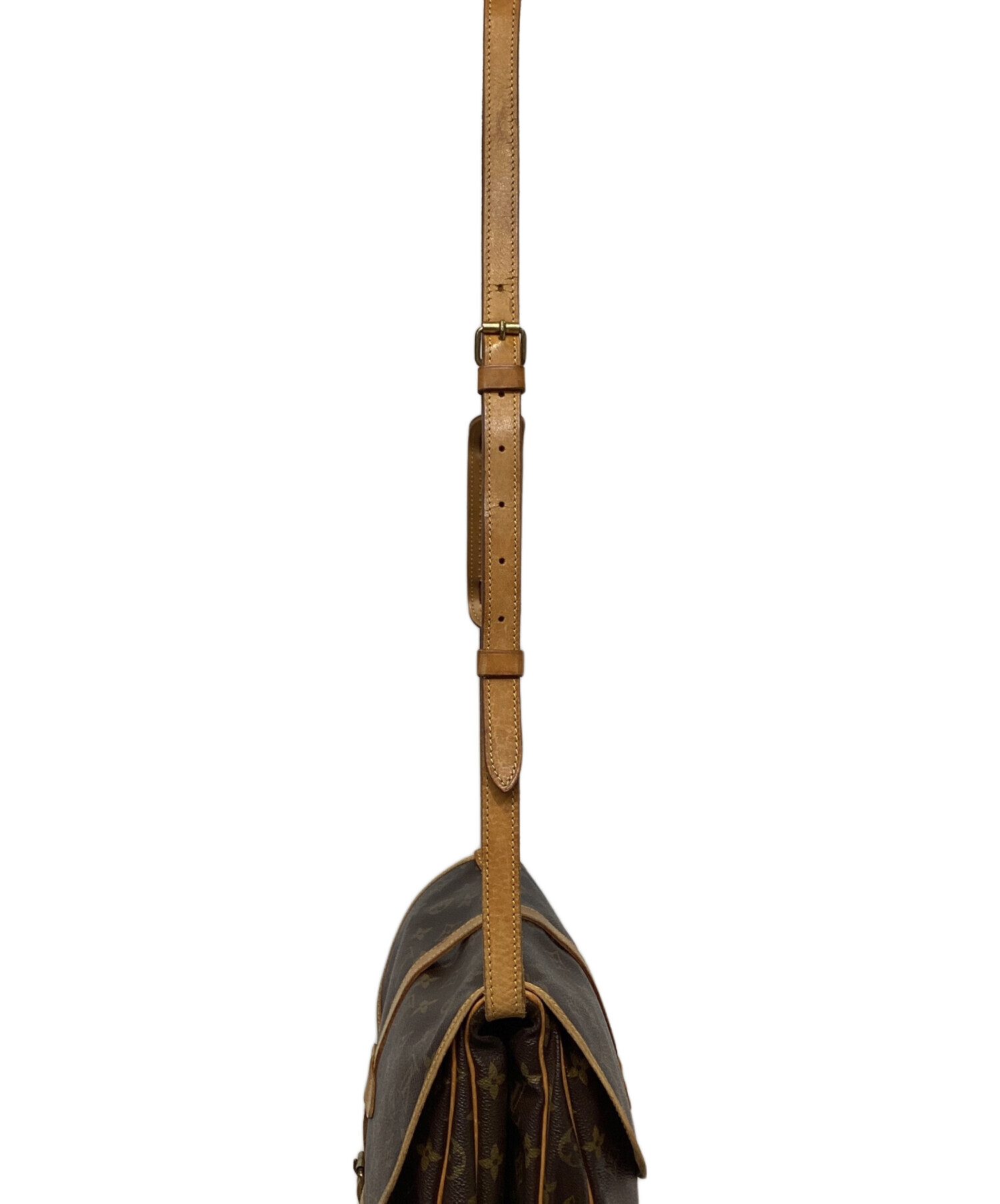 | スタッフコメント | クラシックな馬のサドルのモチーフをモダンにアレンジしたLOUIS VUITTONのソミュール30になります。両面が対称になっている個性的なデザインも魅力的な商品です。 |
