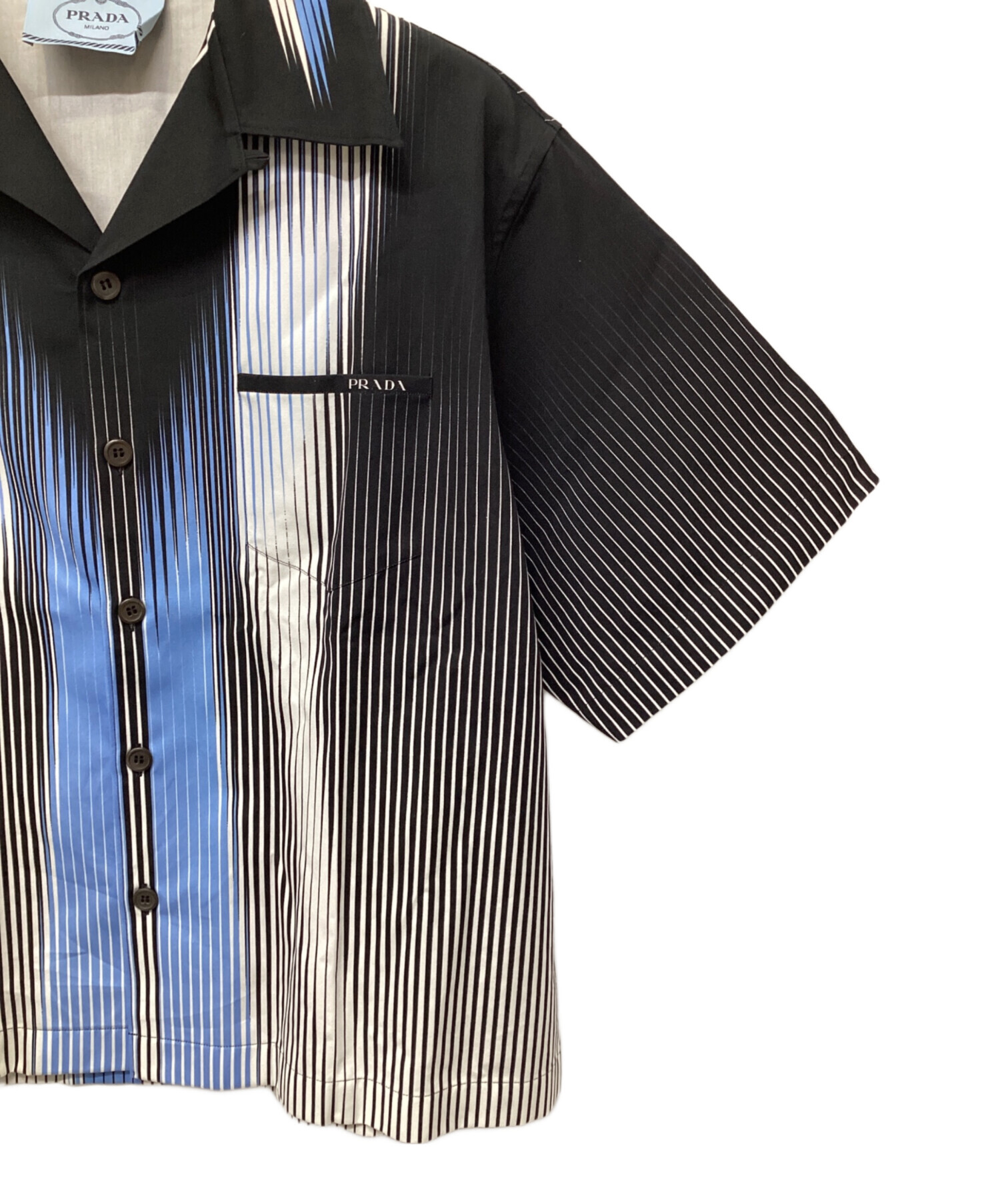 | スタッフコメント | PRADA(プラダ)ACU1 2020 3435 ストライプ 半袖シャツ こちらのアイテムは、夏のコーデに活躍する一着です。 黒をベースにホワイトとスカイブルーのストライプが施され、清潔感や高級感が演出されております。 また、ポケットが付いており機能性にも優れています。 |