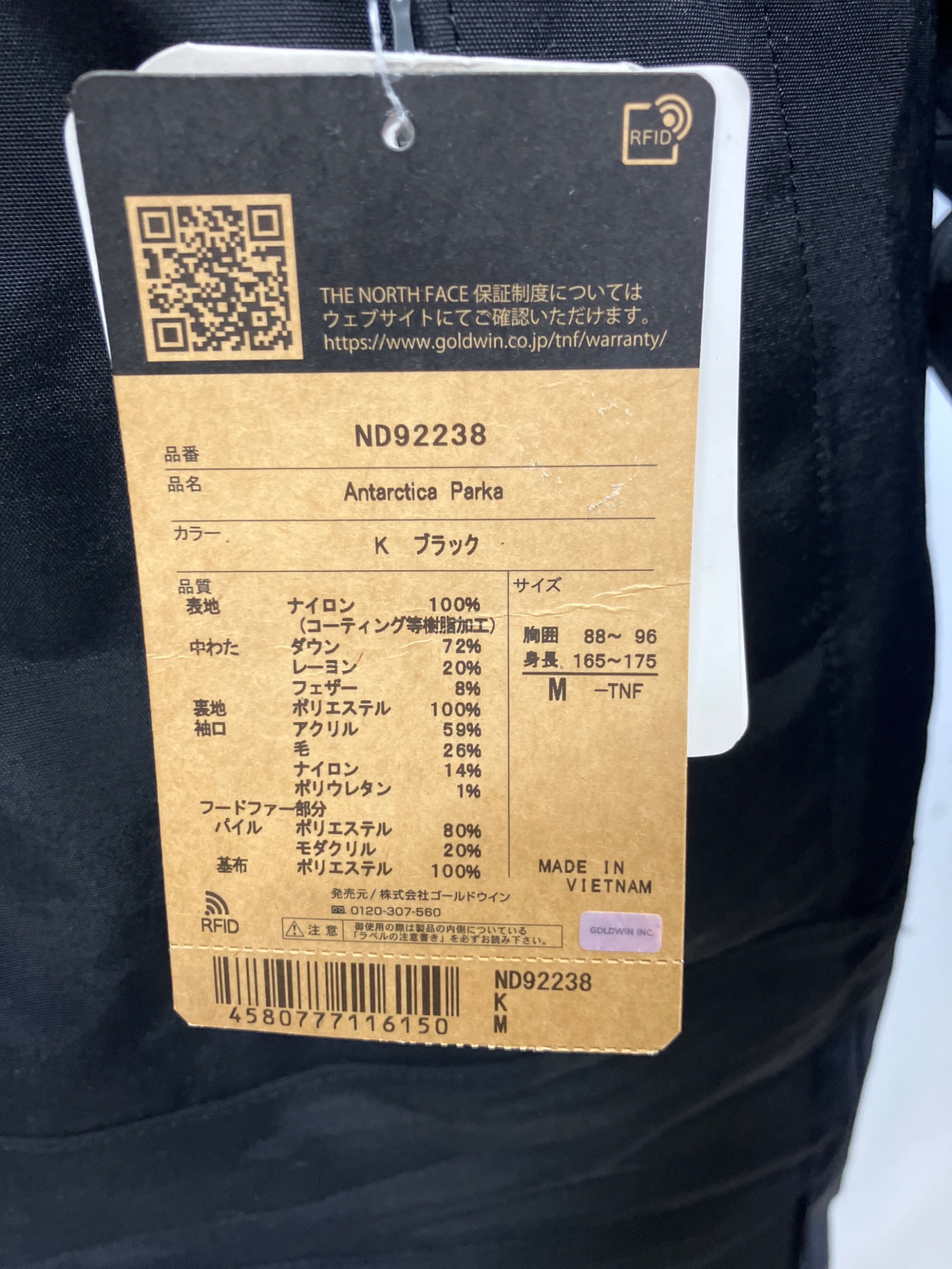 | 素材 | 表地: ナイロン 100% 中わた: ダウン 72% レーヨン 20% フェザー 8% 表地: ポリエステル 100% 袖口: アクリル 59% 毛 26% ナイロン 14% ポリウレタン 1% アクリル 59% 毛 26% ナイロン 14% フードファー部分/パイル: ポリエステル 80% 毛皮 20% |