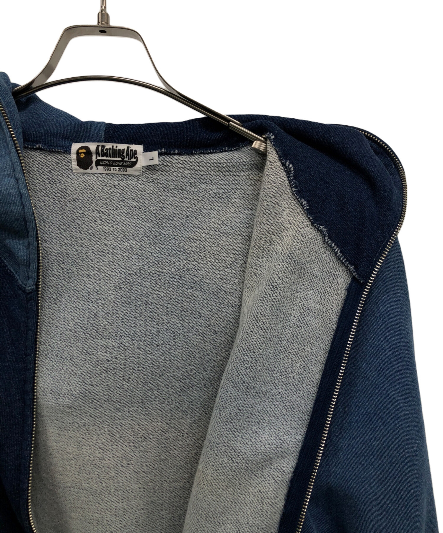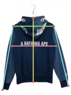 スタッフコメント A BATHING APE(ア ベイシング エイプ)のパーカーです。シャークパーカーで頂点までジップできるのが特徴です。パーカーや背面にイラストがプリントされており存在感のある一品です。
