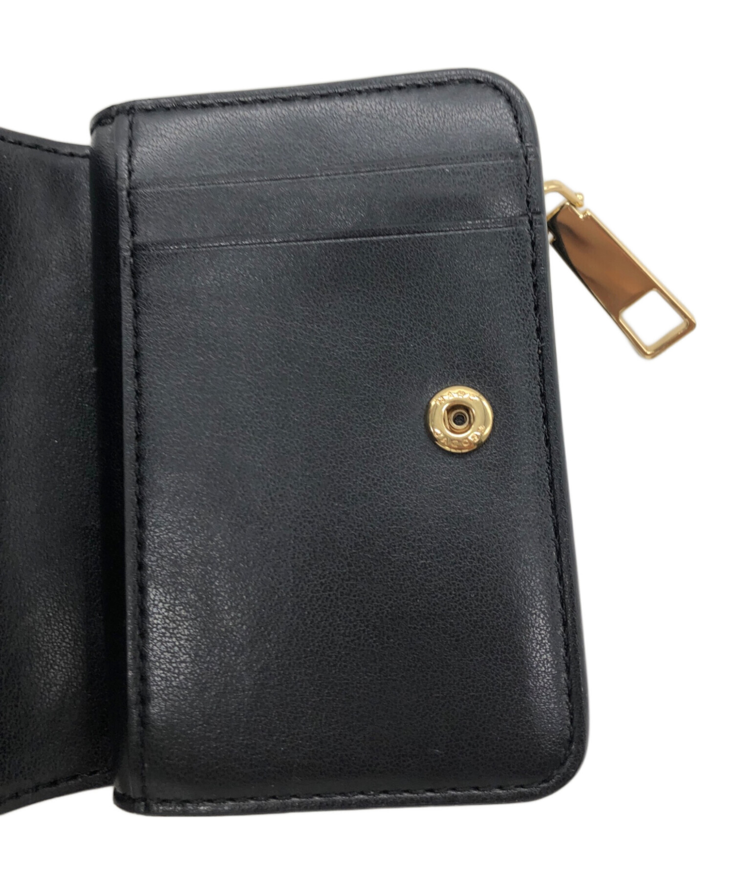 スタッフコメント MARC JACOBS(マークジェイコブス)の二つ折り財布です。コンパクトで小さめな鞄はもちろんバッグ無しでもポケットなどに収納しやすく持ち運びがしやすい一品です。コンパクトですが現金はもちろんカードも多く収納できる一品です。