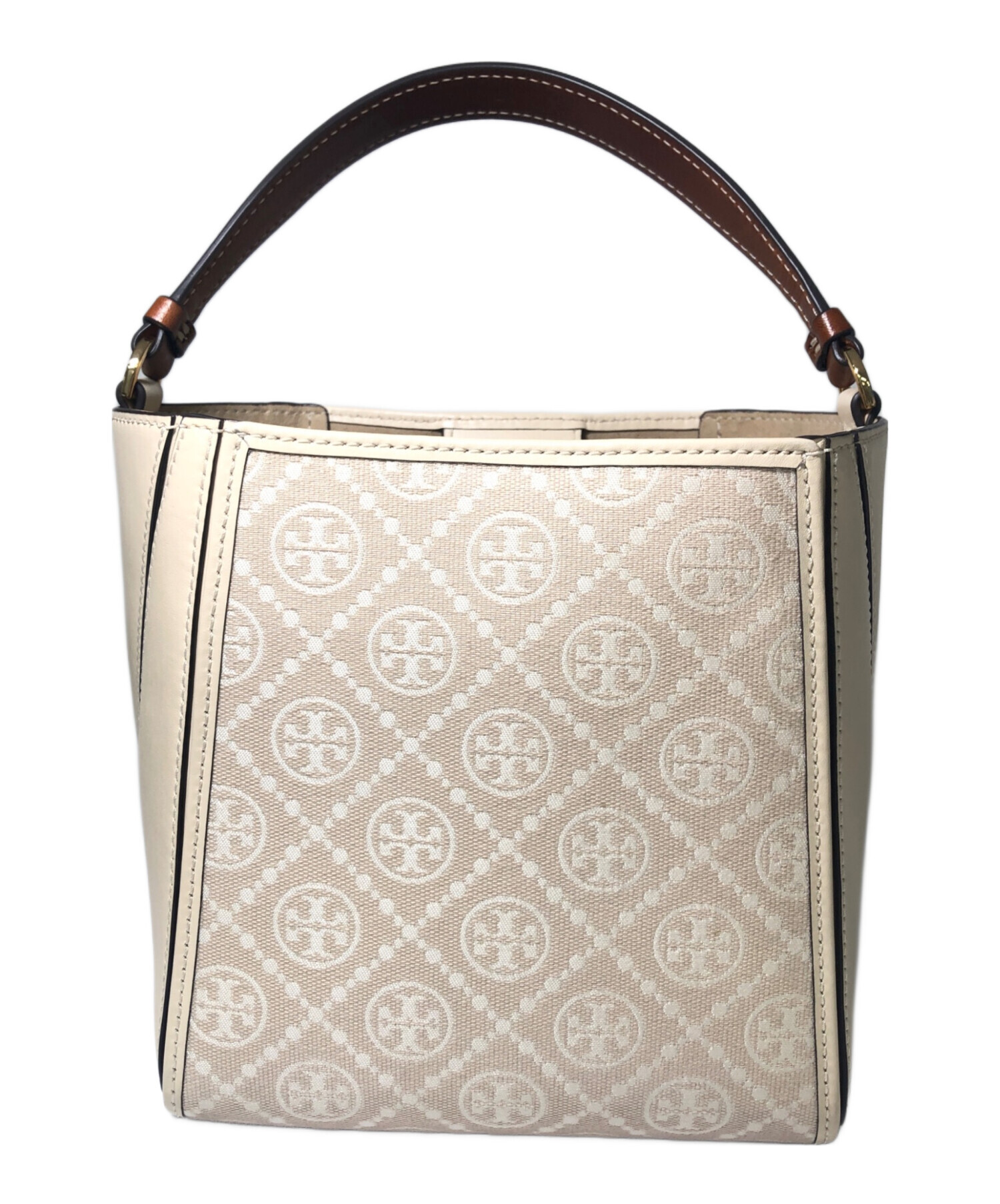• TORY BURCH(トリーバーチ)TORY BURCH (トリーバーチ) マックグロースモールバケット ブラウン×ベージュの古着・服飾アイテム 底面ヨゴレ・角スレ有