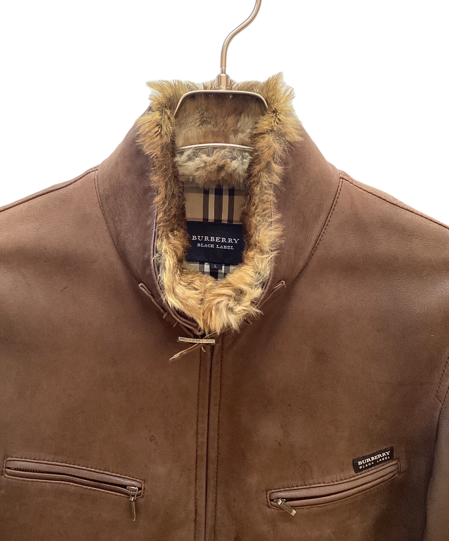 | 素材 | 表地:羊革 ファー部分ラビット 別布チェック部分:綿100% 裏地 胴:キュプラ :ポリエステル 袖:キュプラ |
