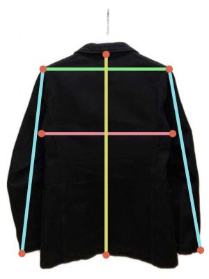 肩幅約43cm 身幅約49.5cm 袖丈約61cm 着丈約66.5cm