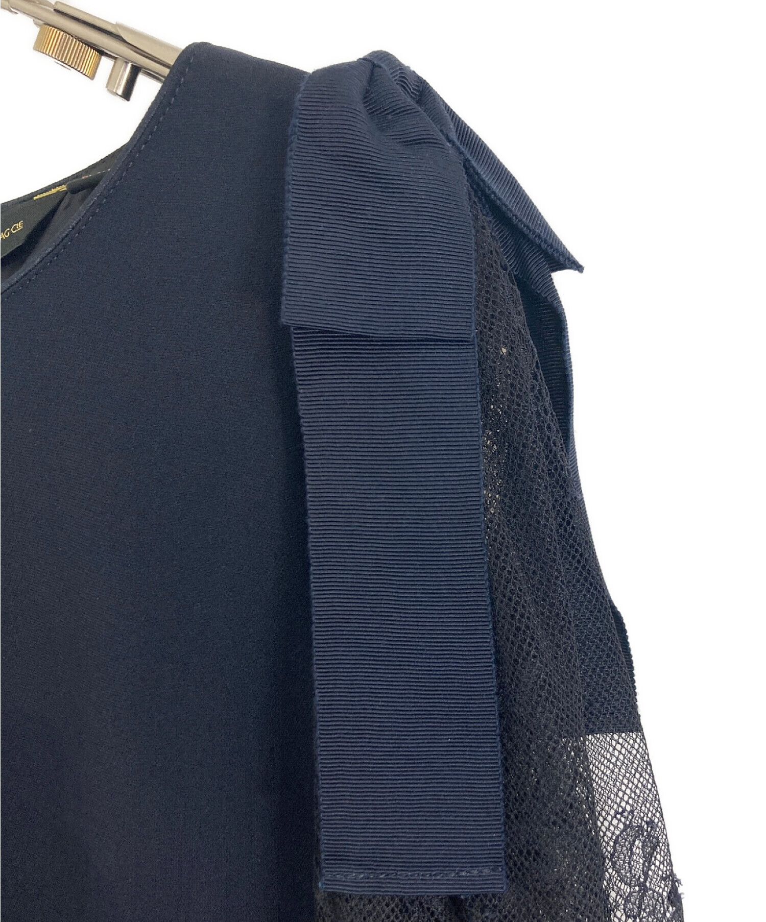 | 素材 | 表地:トリアセテート 64%/ポリエステル 36% 裏地:ポリエステル 100% レース部分:ナイロン 100% グログランリボン:レーヨン 100% パイピングテープ:ポリエステル 100% |