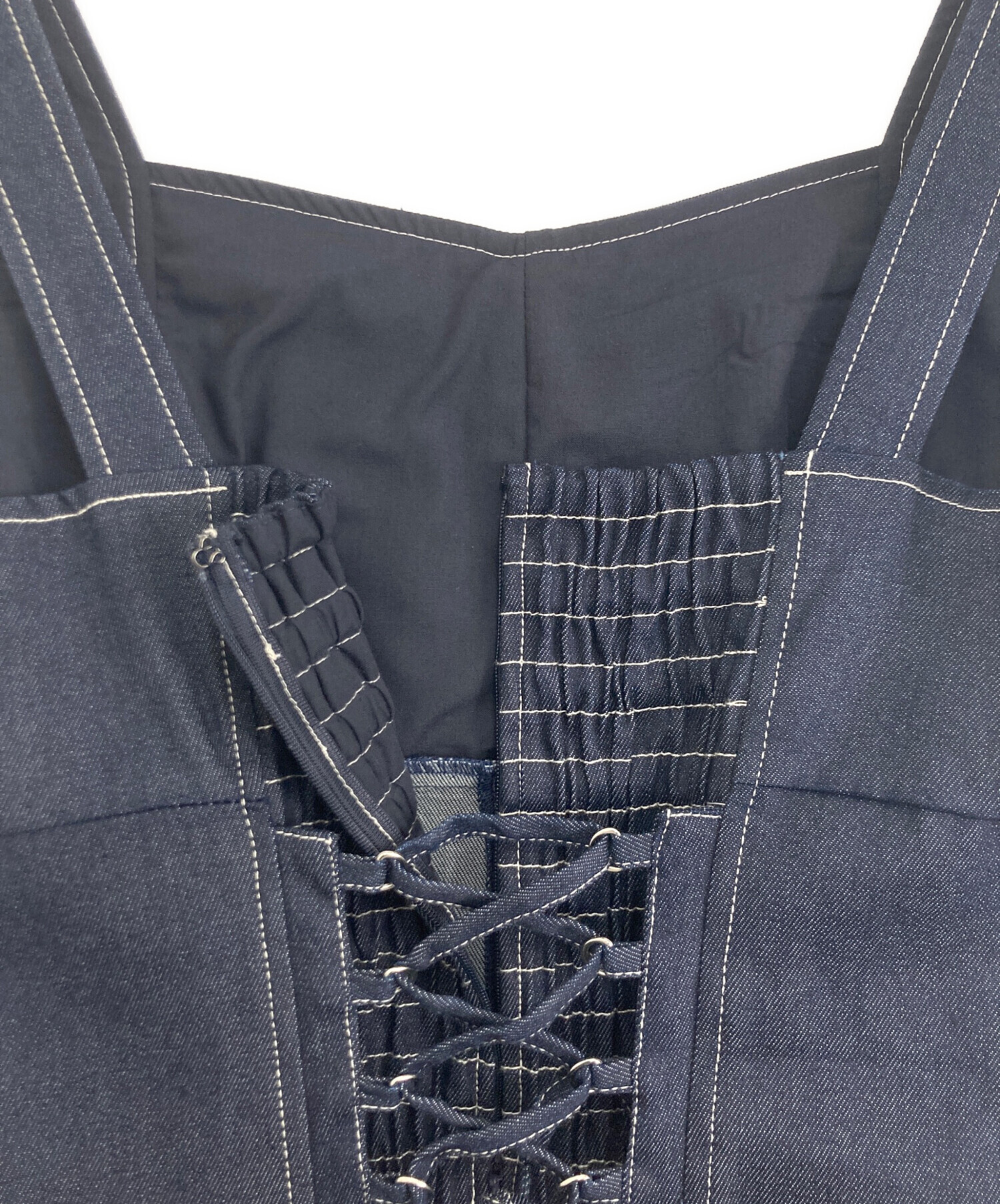 アイテム名 裾フリンジバックレースアップデニムワンピース