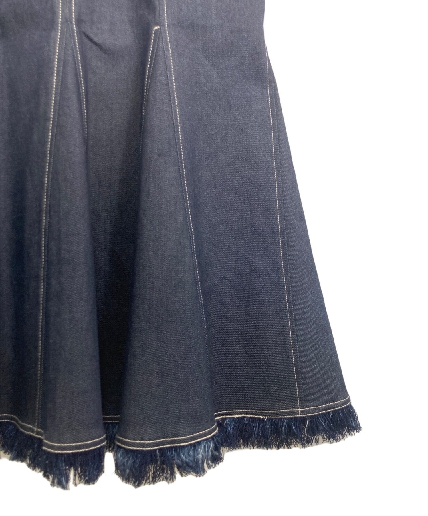 裾フリンジバックレースアップデニムワンピース