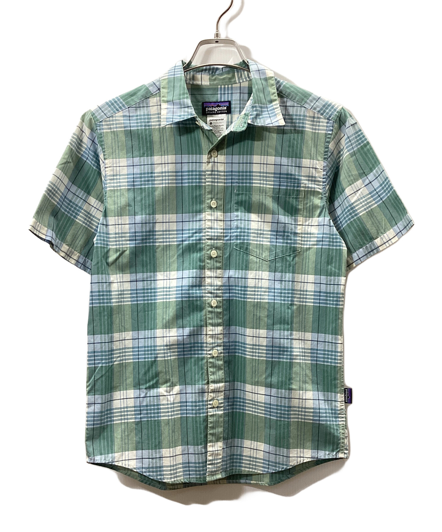 • Patagonia(パタゴニア)Patagonia (パタゴニア) 半袖シャツ ブルー×グリーン サイズ:XSの古着・服飾アイテム ボタンに刻印有
