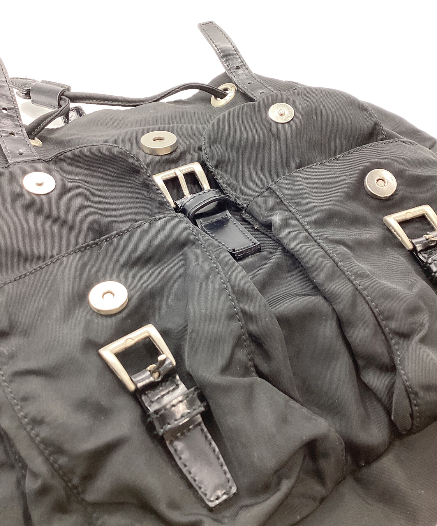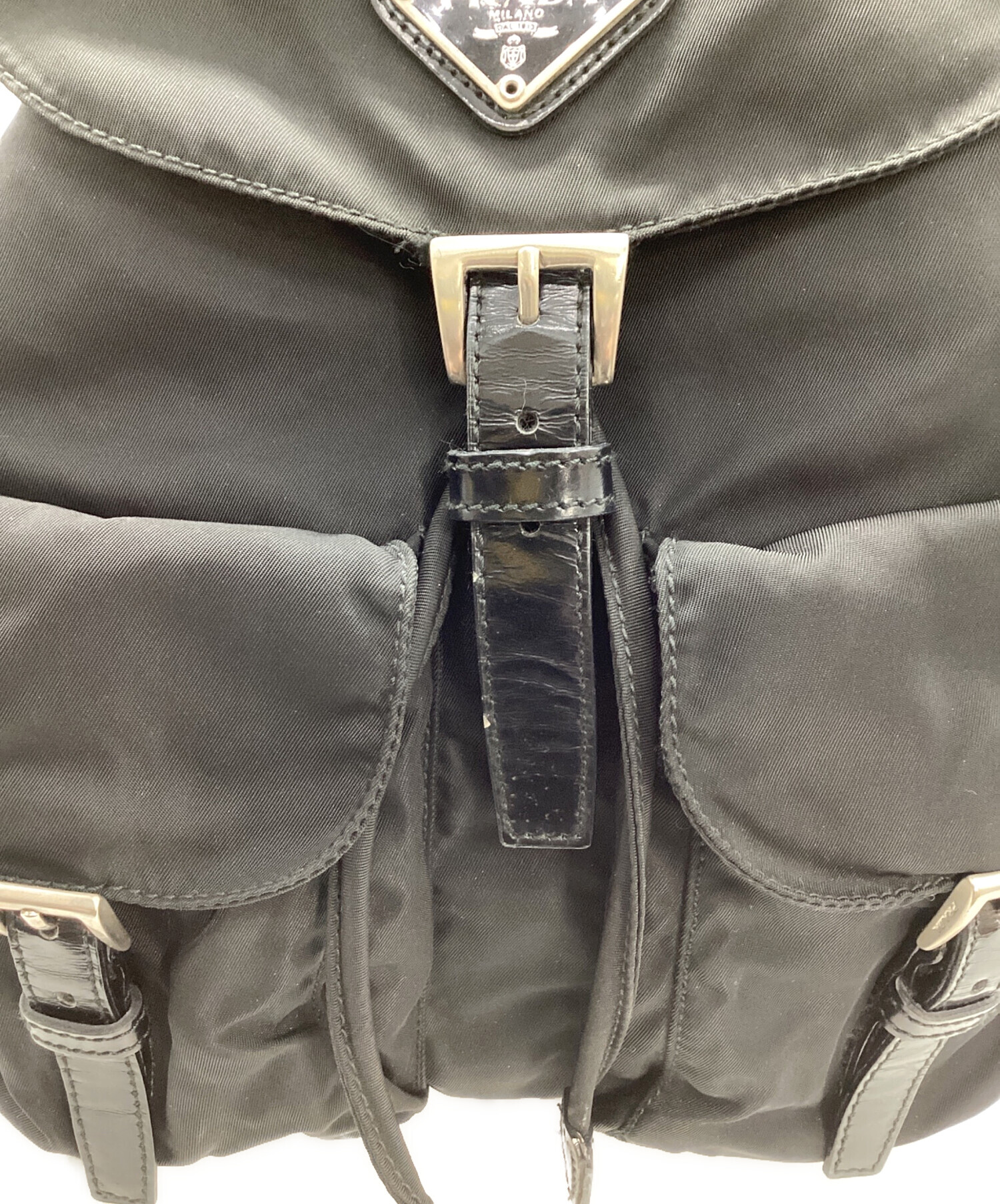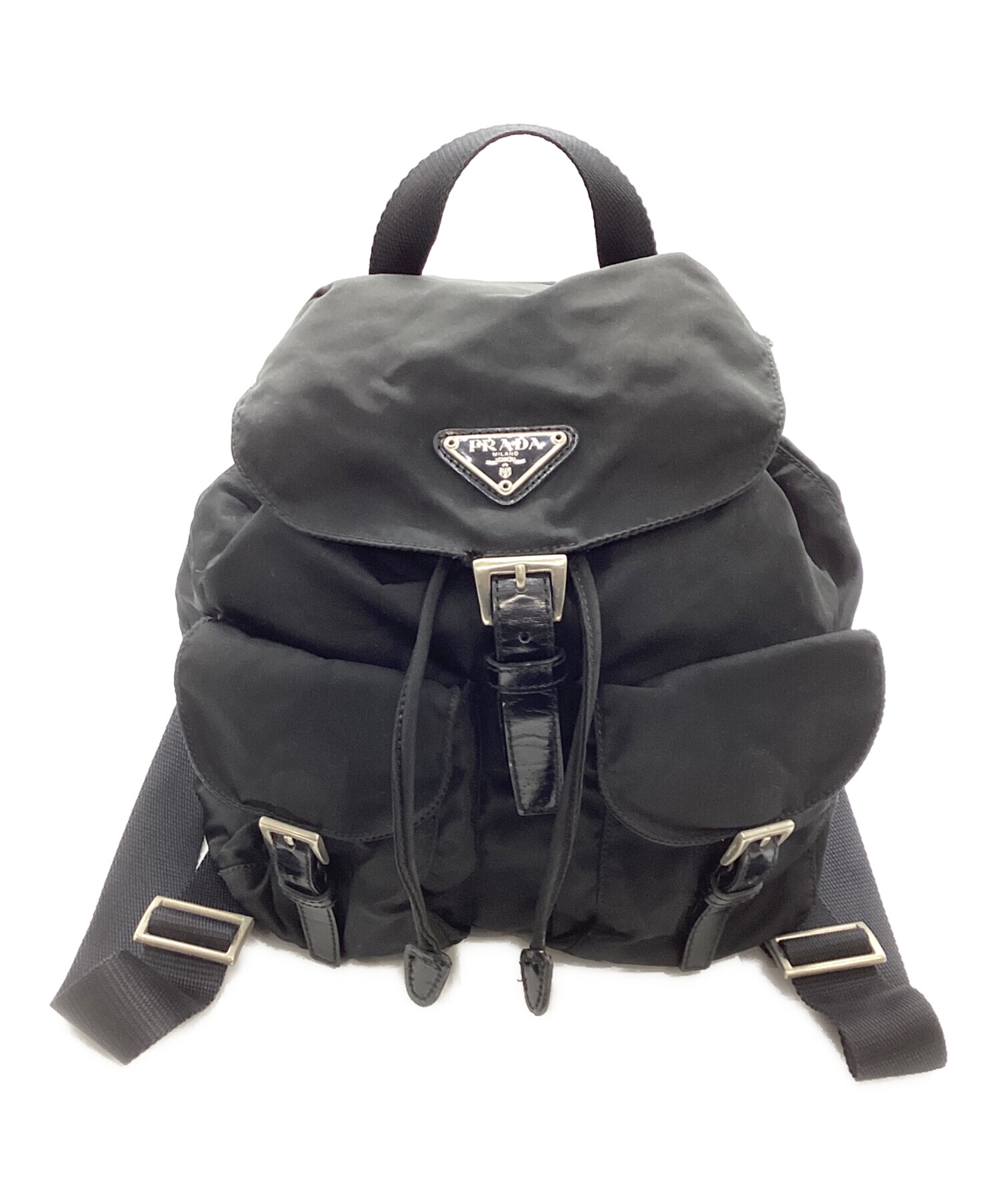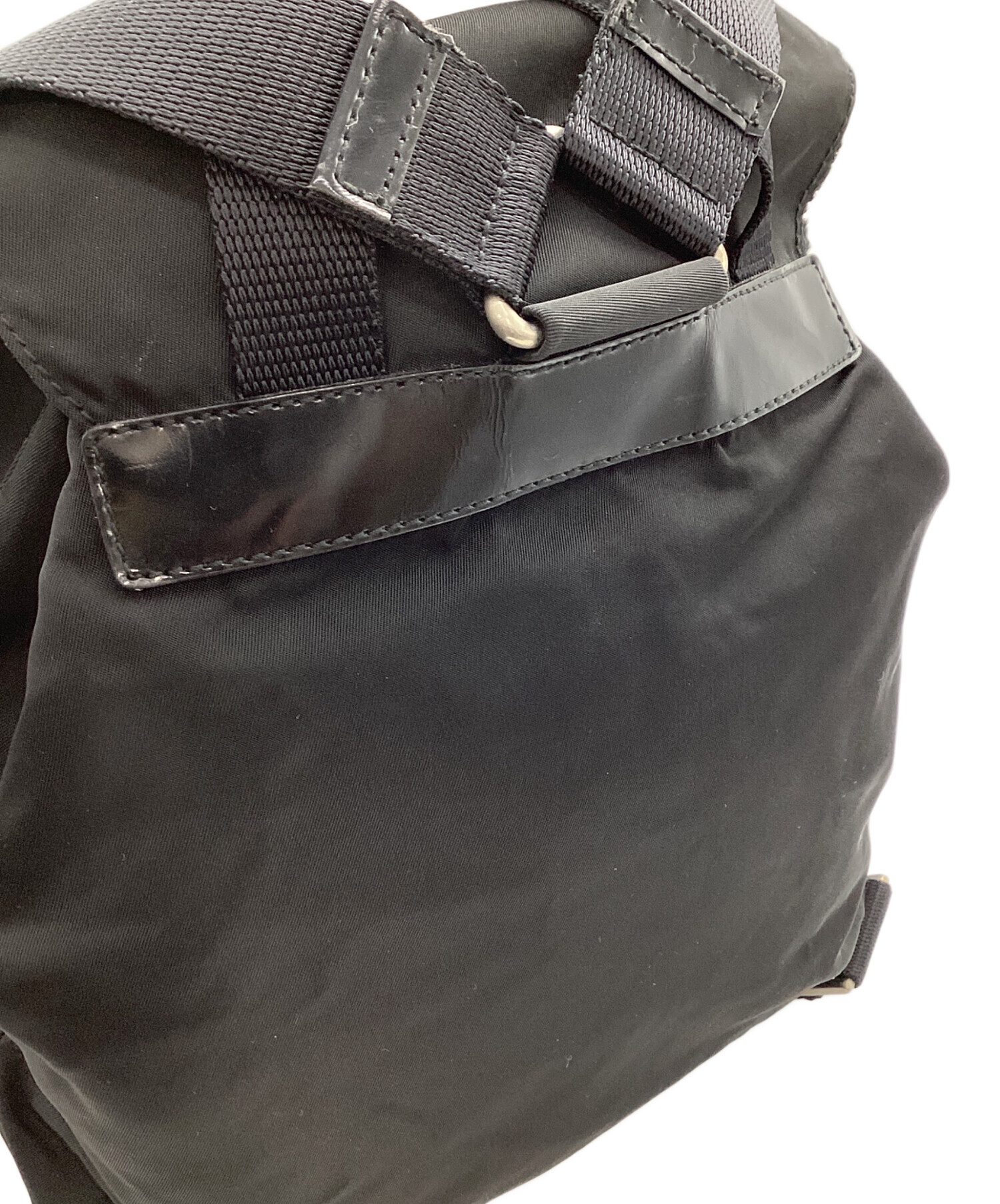 • PRADA(プラダ)PRADA (プラダ) PRADA スモール Re-Nylon バックパック ブラックの古着・服飾アイテム 全体 ヨゴレ・使用感有・金属部分 ヨゴレ有