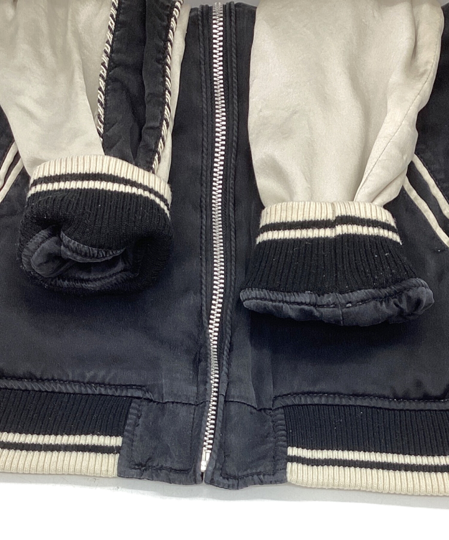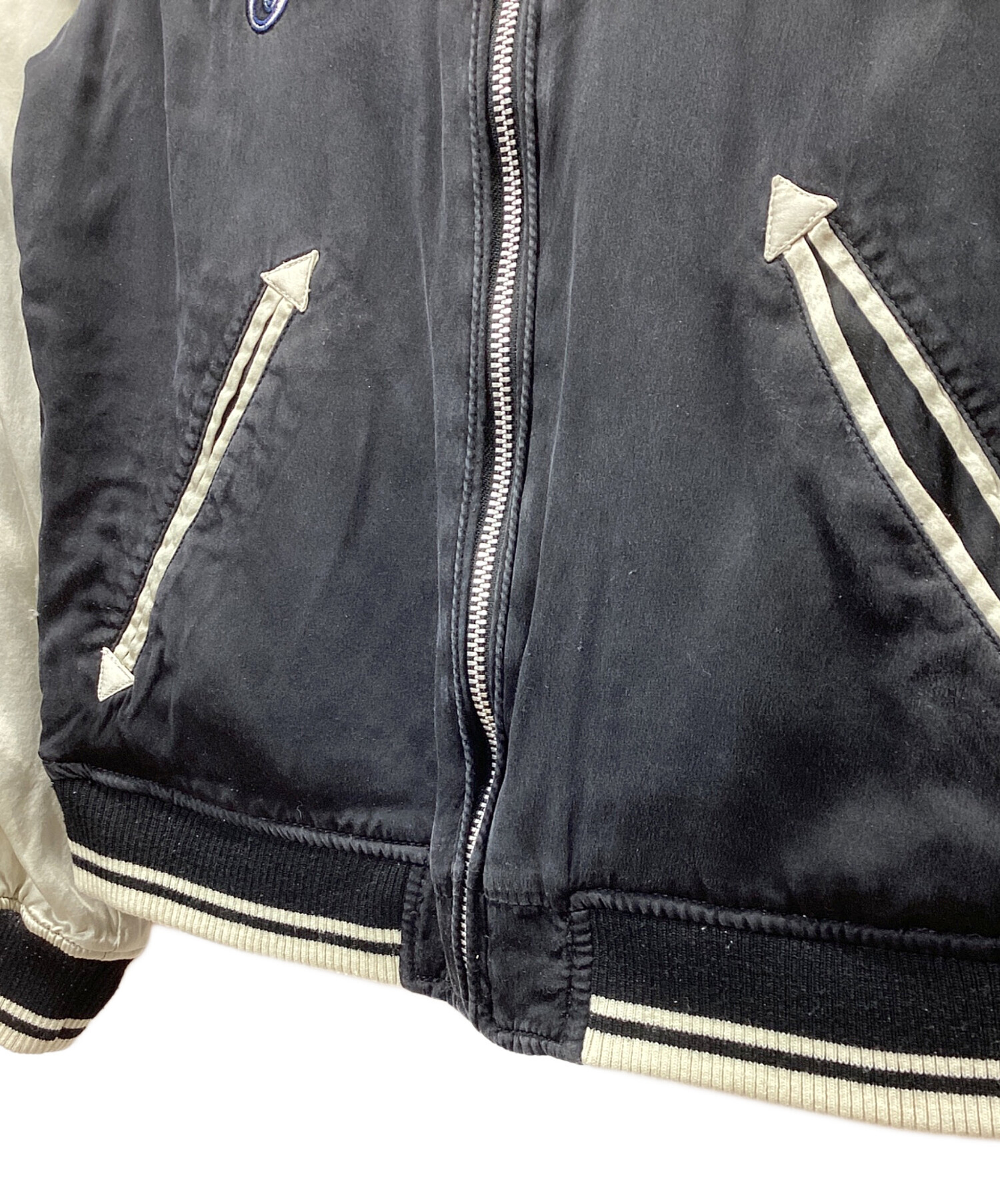 • HG(エイチジー)HG (エイチジー) ヒスガール リバーシブルスカジャン ベージュ×ブラック サイズ:freeの古着・服飾アイテム ダメージ・襟毛玉、ヨゴレ有
