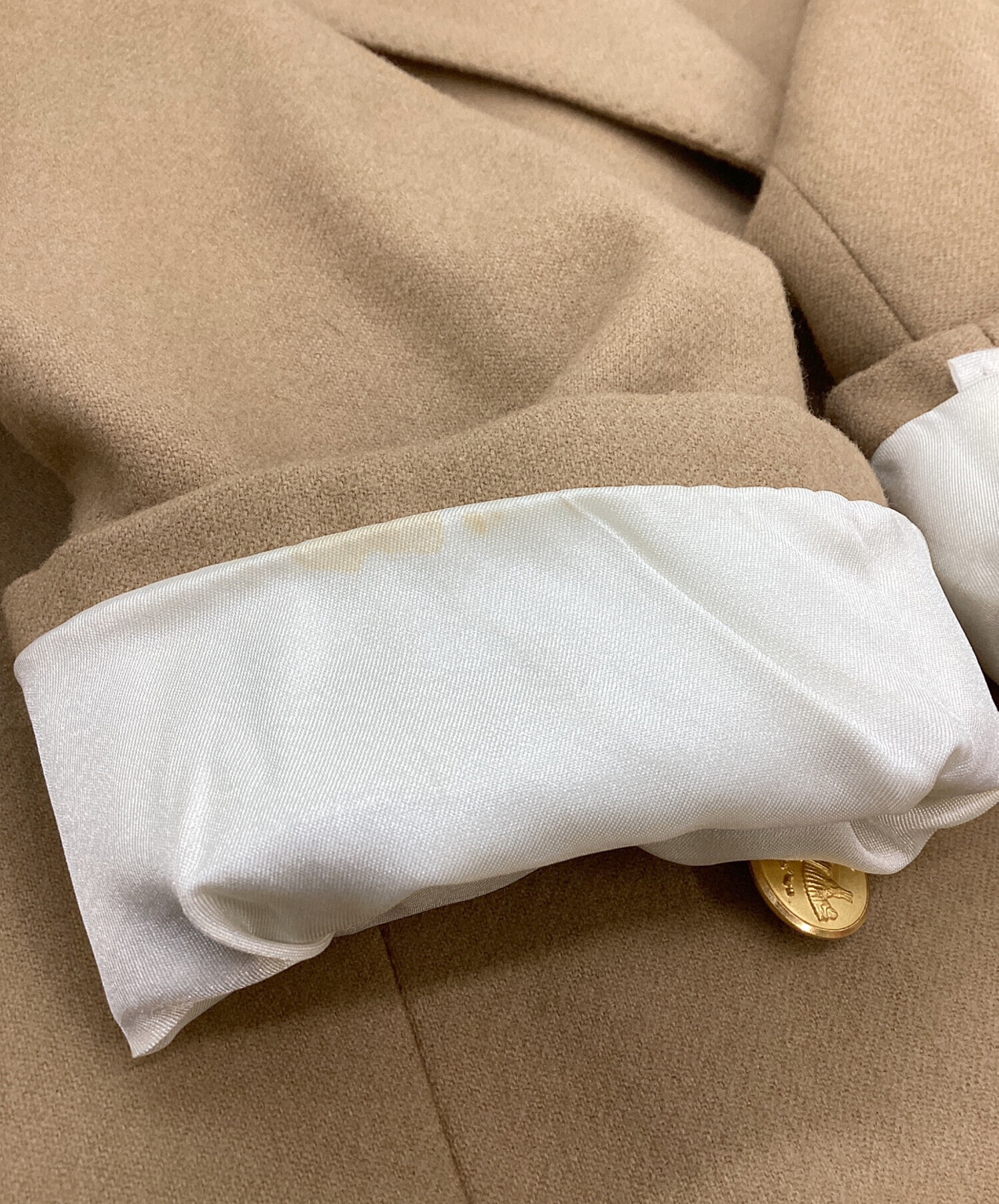 目立つシミや汚れ、におい等がある場合は商品画像や説明文にて極力表記させていただいておりますが、中古品という商品の特性上、全ての瑕疵や不備、洋服直し箇所を撮影・記載をすることは難しくなっております。また、ほとんどのアイテムは店頭と併売しておりますため、出品掲載時からコンディションが変動している場合もございます。あらかじめご了承くださいませ。