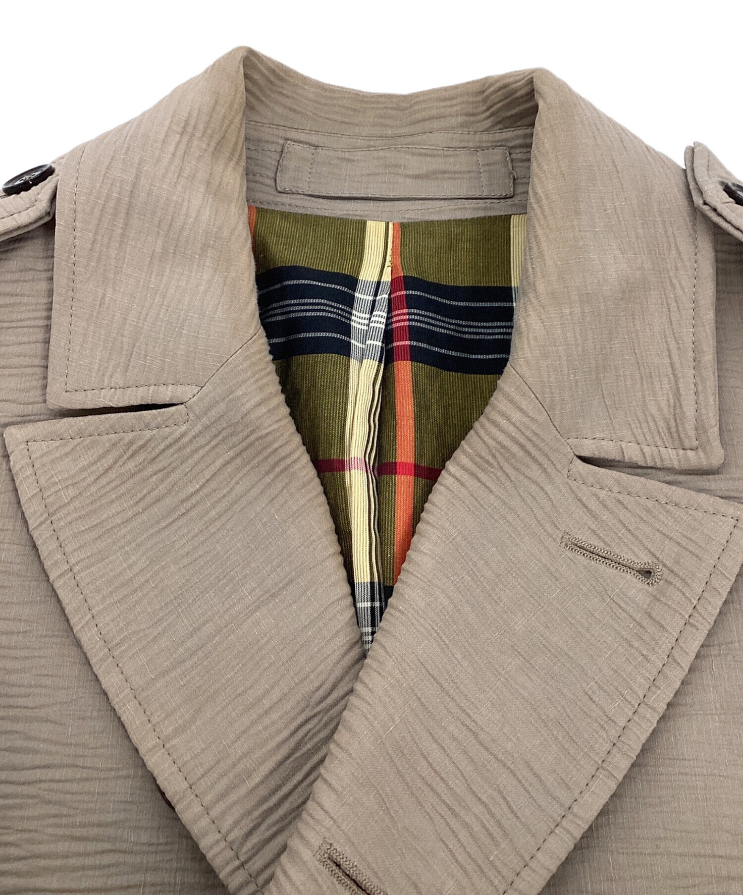 目立つシミや汚れ、におい等がある場合は商品画像や説明文にて極力表記させていただいておりますが、中古品という商品の特性上、全ての瑕疵や不備、洋服直し箇所を撮影・記載をすることは難しくなっております。また、ほとんどのアイテムは店頭と併売しておりますため、出品掲載時からコンディションが変動している場合もございます。あらかじめご了承くださいませ。