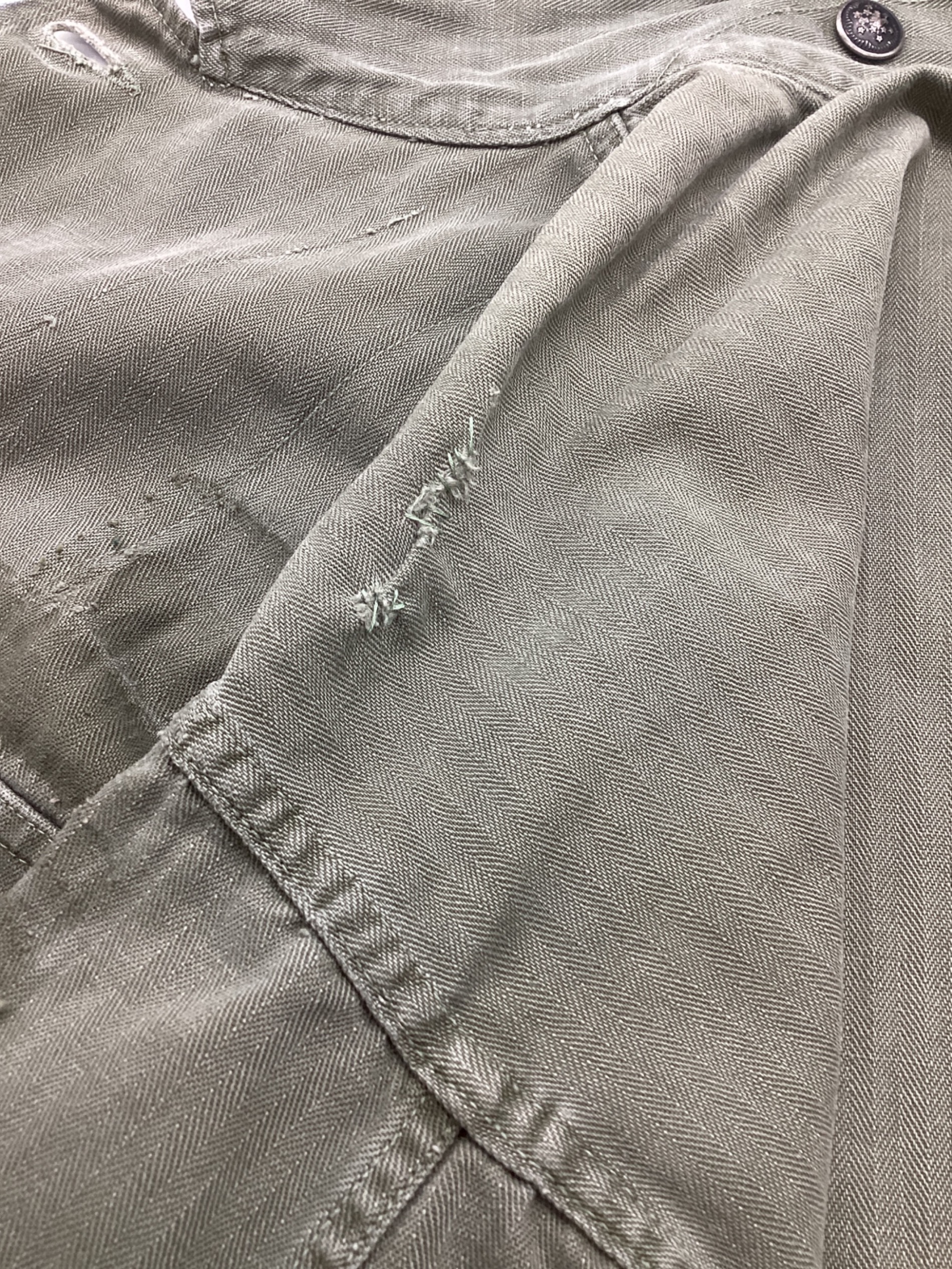 目立つシミや汚れ、におい等がある場合は商品画像や説明文にて極力表記させていただいておりますが、中古品という商品の特性上、全ての瑕疵や不備、洋服直し箇所を撮影・記載をすることは難しくなっております。また、ほとんどのアイテムは店頭と併売しておりますため、出品掲載時からコンディションが変動している場合もございます。あらかじめご了承くださいませ。