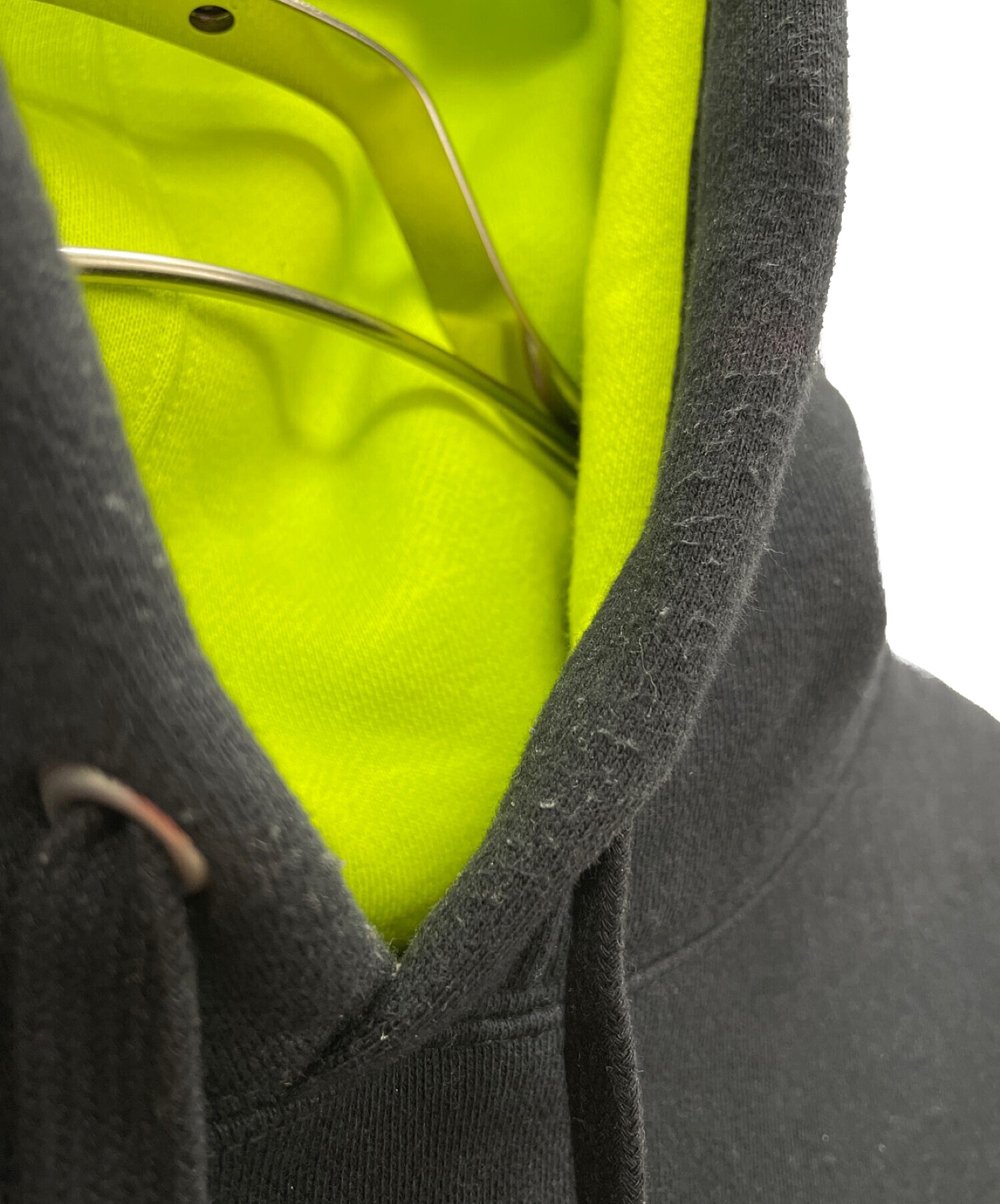 | スタッフコメント | Championのスウェットを、ストリート系のWTAPSらしいシルエットに仕上げた、コーディネイトし易いお品物です。ブラック1色のボディカラーに、フードの内側がネオングリーンになっていて、アクセントカラーが印象に残る一品です。 |