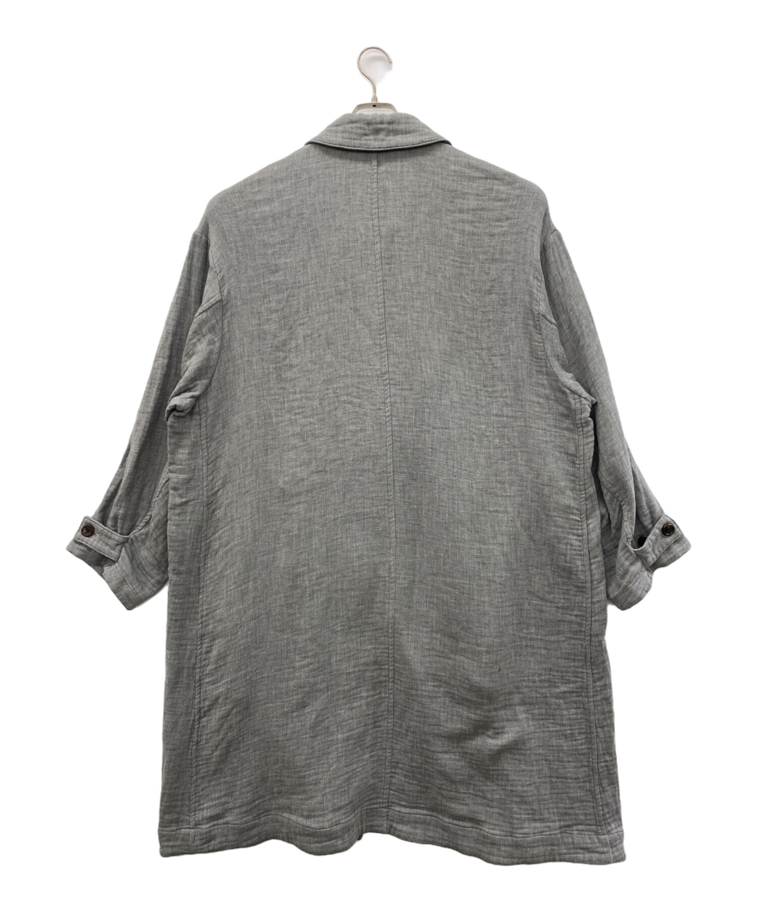 | スタッフコメント | 肌触りの良いグレーのロングコートです。薄めで軽いため肌寒いときの一枚として着用することが出来ます。 |