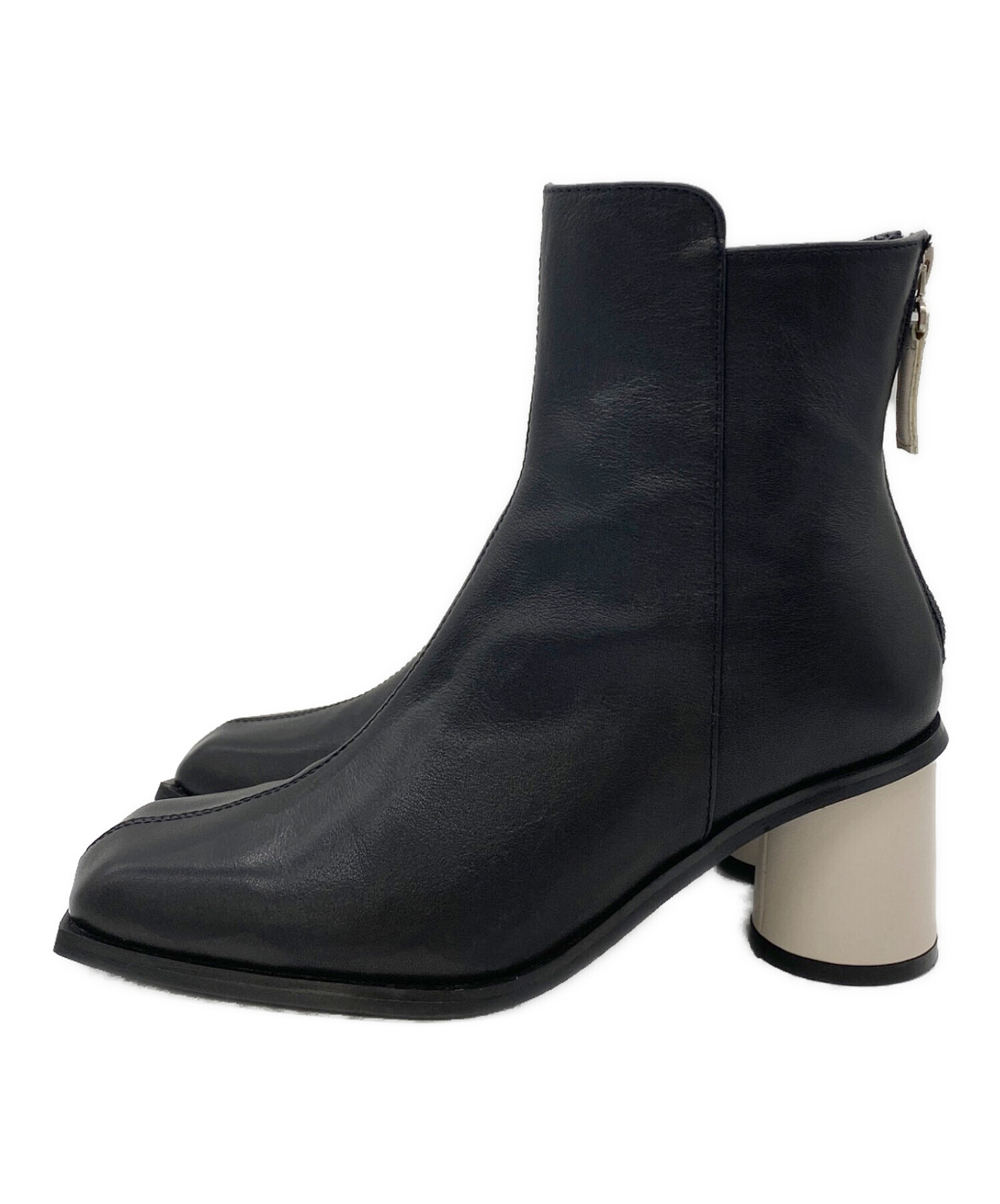 | スタッフコメント | 太めのヒールやシャープなトゥなど、構築的でモードなシルエットが特徴。ジップは着脱のしやすさだけでなく、デザインのアクセントとしても機能しています。エッジの効いたスタイルを完成させる、存在感のある一足です。 |