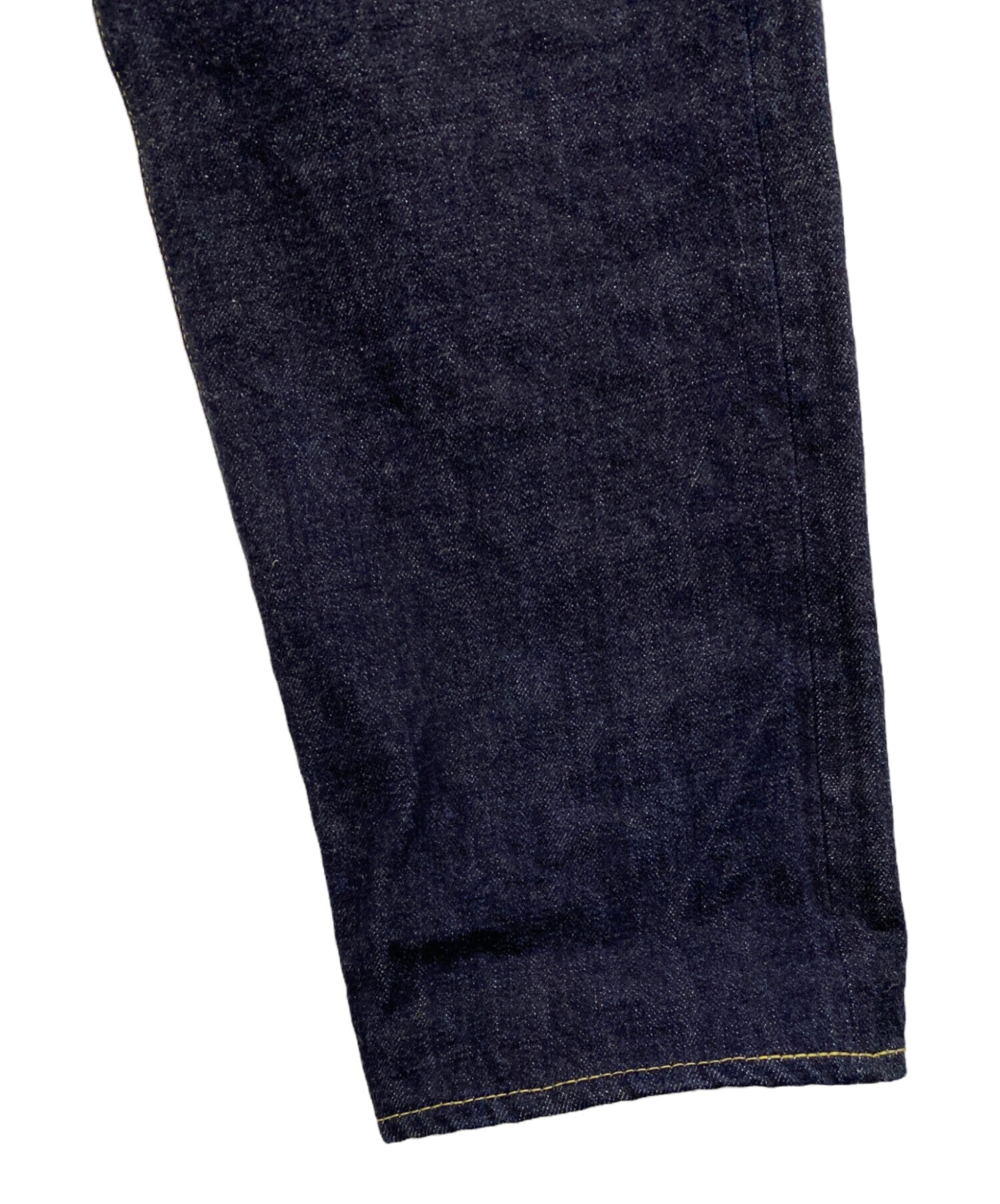 | スタッフコメント | 太ももから裾にかけてテーパードがかったシルエットです。特有のザラザラ感のある生地によって荒々しい特徴的な色落ちを楽しめます。 |