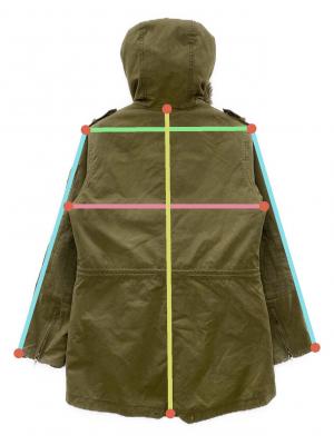 | 素材 | 表地: 綿 100% 裏地: ポリエステル 100% 裏地(別布) ポリエステル 70% アクリル 30% 袖裏: ポリエステル 100% ドリップストリップ: ポリエステル 100% 詰物: ポリエステル 100% ファー: アクリル 85% ポリエステル 15% |