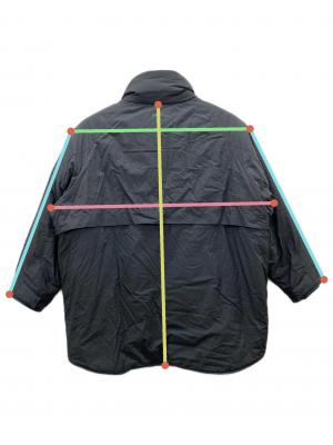 | スタッフコメント | こちらのアイテムはバックパックや装備の上から羽織ることを想定した極端なビッグシルエットを忠実に再現しています。ただ大きいだけでなく、後ろ身頃を長く設定したフィッシュテールのようなカッティングにより、冷気の侵入を防ぎつつ、横から見た際の立ち姿に美しいボリューム感をもたらします。 |