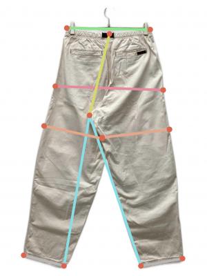 ウエスト周り約75cm ヒップ周り約107.5cm もも周り約68cm 裾周り約39.5cm 股上(後ろ)約38.5cm 股下(後ろ)約70.5cm