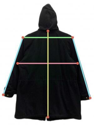 肩幅約48cm 身幅約58.5cm 袖丈約58cm 着丈約76.5cm