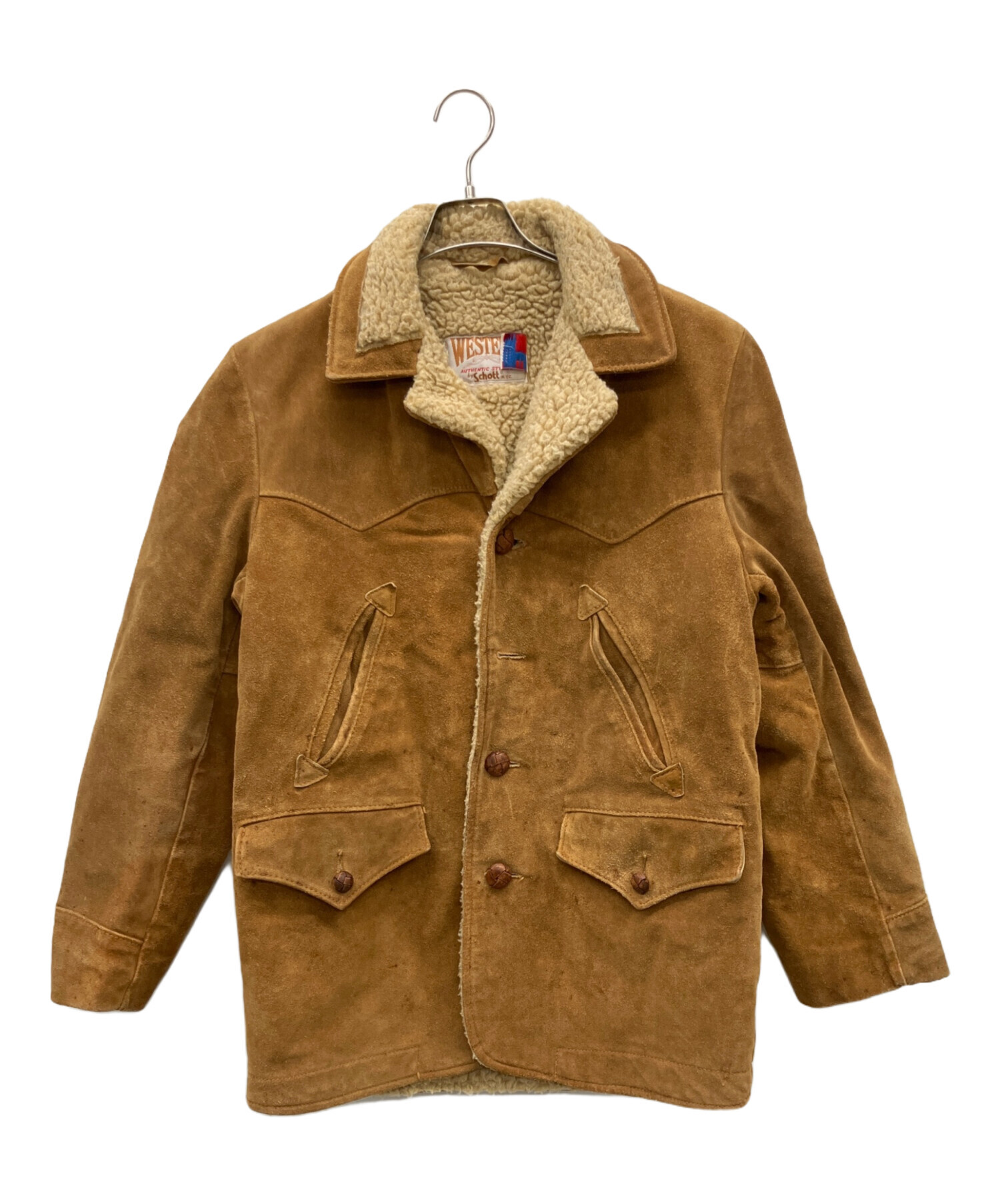 • Schott(ショット)Schott (ショット) 80’Sウエスタンレザージャケット ブラウン サイズ:36の古着・服飾アイテム 第二ボタン欠損