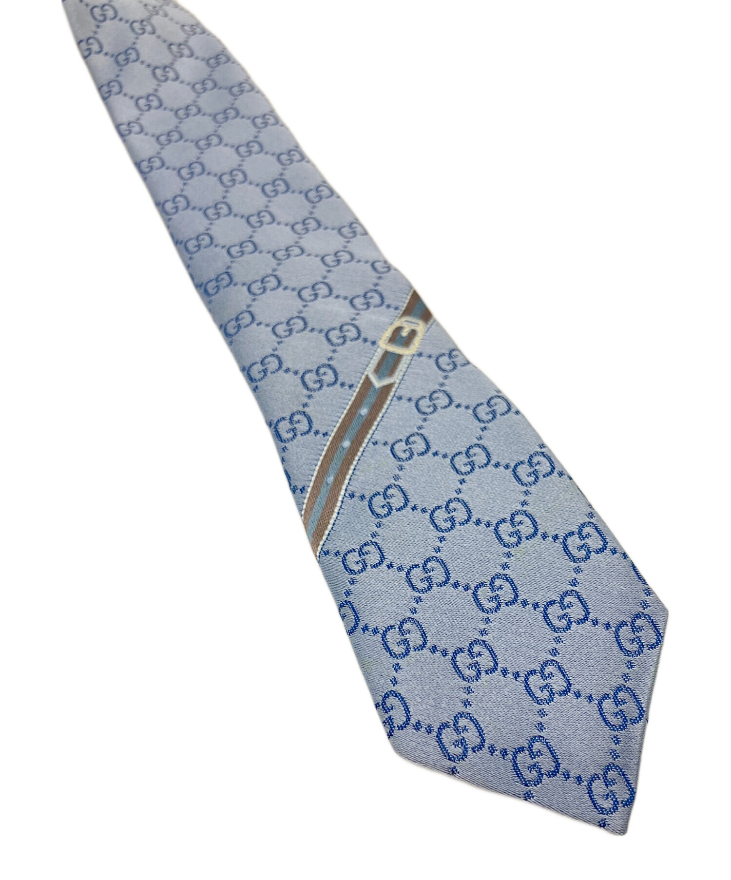 • GUCCI(グッチ)GUCCI (グッチ) ネクタイ スカイブルー サイズ:FREEの古着・服飾アイテム ベルトモチーフ付近にシミ有