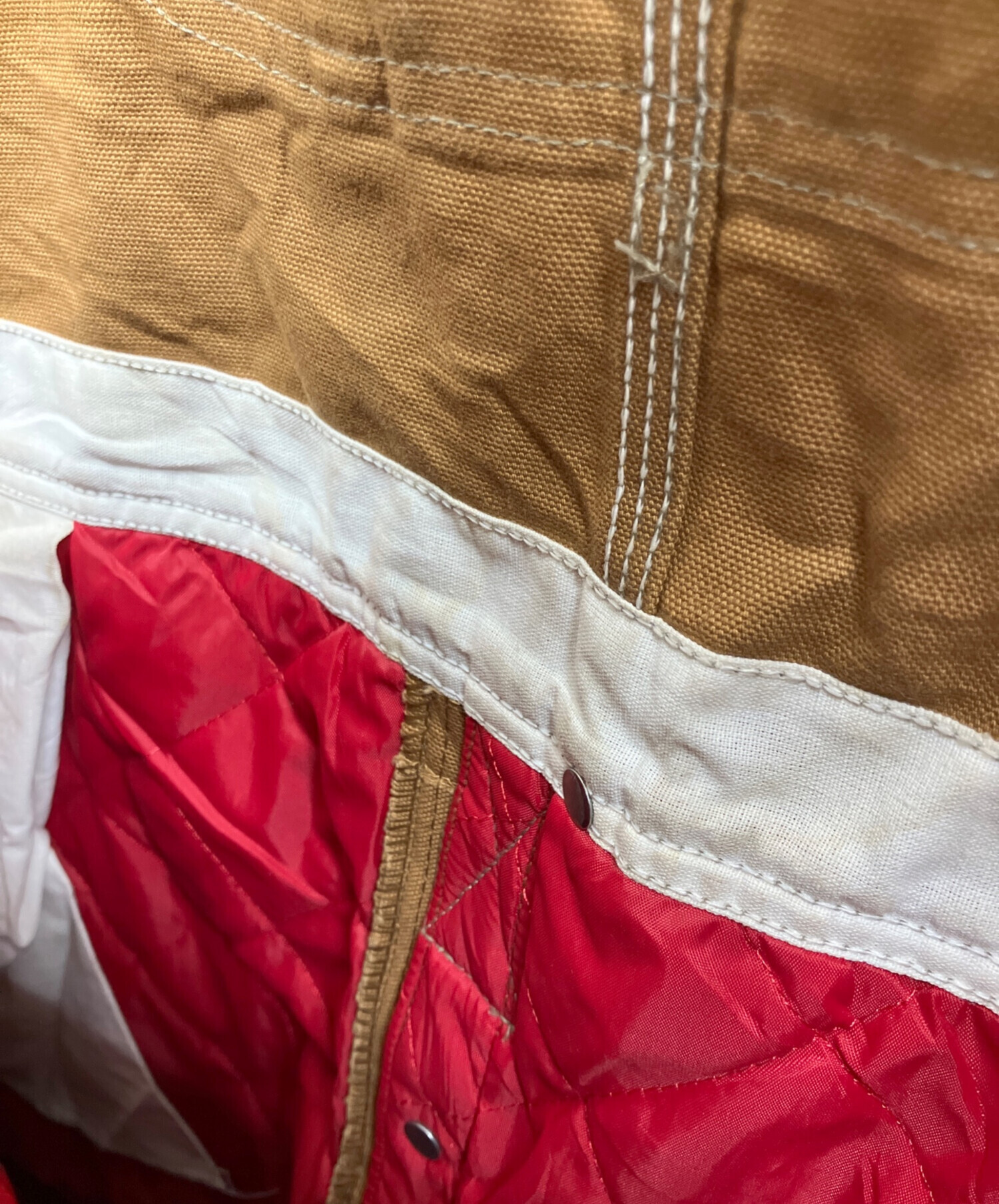 • CarHartt(カーハート)CarHartt (カーハート) ダブルニーオーバーオール ベージュ サイズ:FREEの古着・服飾アイテム 汚れ有